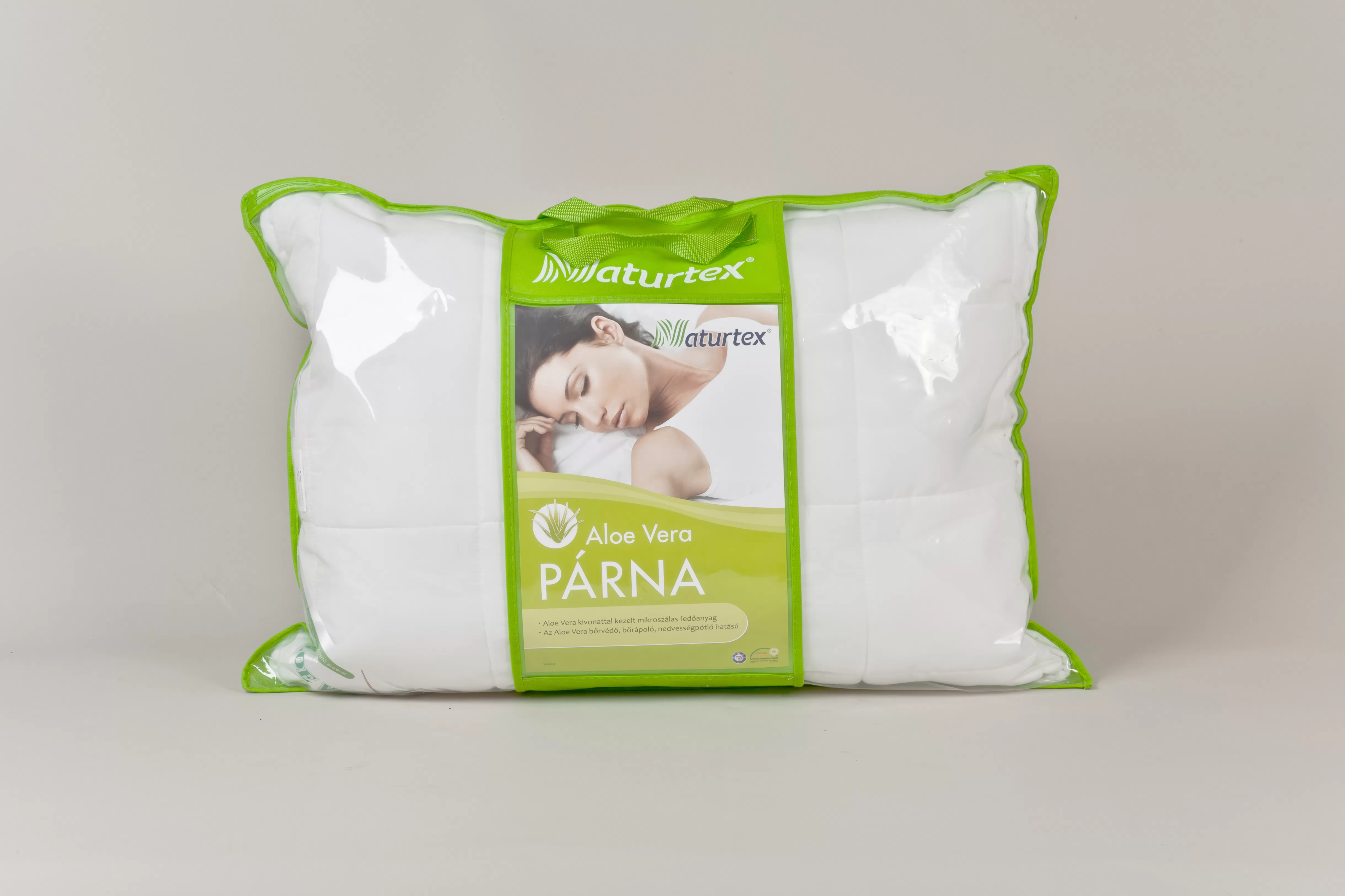 Az Aloe Vera párna fedőanyaga speciális Aloe Vera-kivonat felhasználásával készül.Az Aloe Vera hosszú időn keresztül szivacsként őrzi a gyökerek és a levelek által megszűrt vizet.A nedvesség áttetsző zselévé alakul, mely mintegy 250-féle, az emberi szervezet számára hasznos alkotóelemet tartalmaz. A fehér, pamut (Aloe Vera) huzatanyagú párnák finom, puha érzetet nyújtanak. Az aloe verának fertőtlenítő (baktérium-, vírus- és gombaölő) és erős gyulladáscsökkentő hatást tulajdonítanak. Emellett antioxidáns szer, a sejtek anyagcseréjének élénkítését, a bőr sejtjeinek megfiatalítását, tisztító és méregtelenítő hatást is tulajdonítanak az aloének. Számos irodalmi utalás található az immunrendszert erősítő, fájdalmat csillapító hatására.