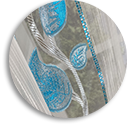 Türkiz leveles, szálbeszövéses, nyírt voile függöny organza betéttel, max. 290 cm magas