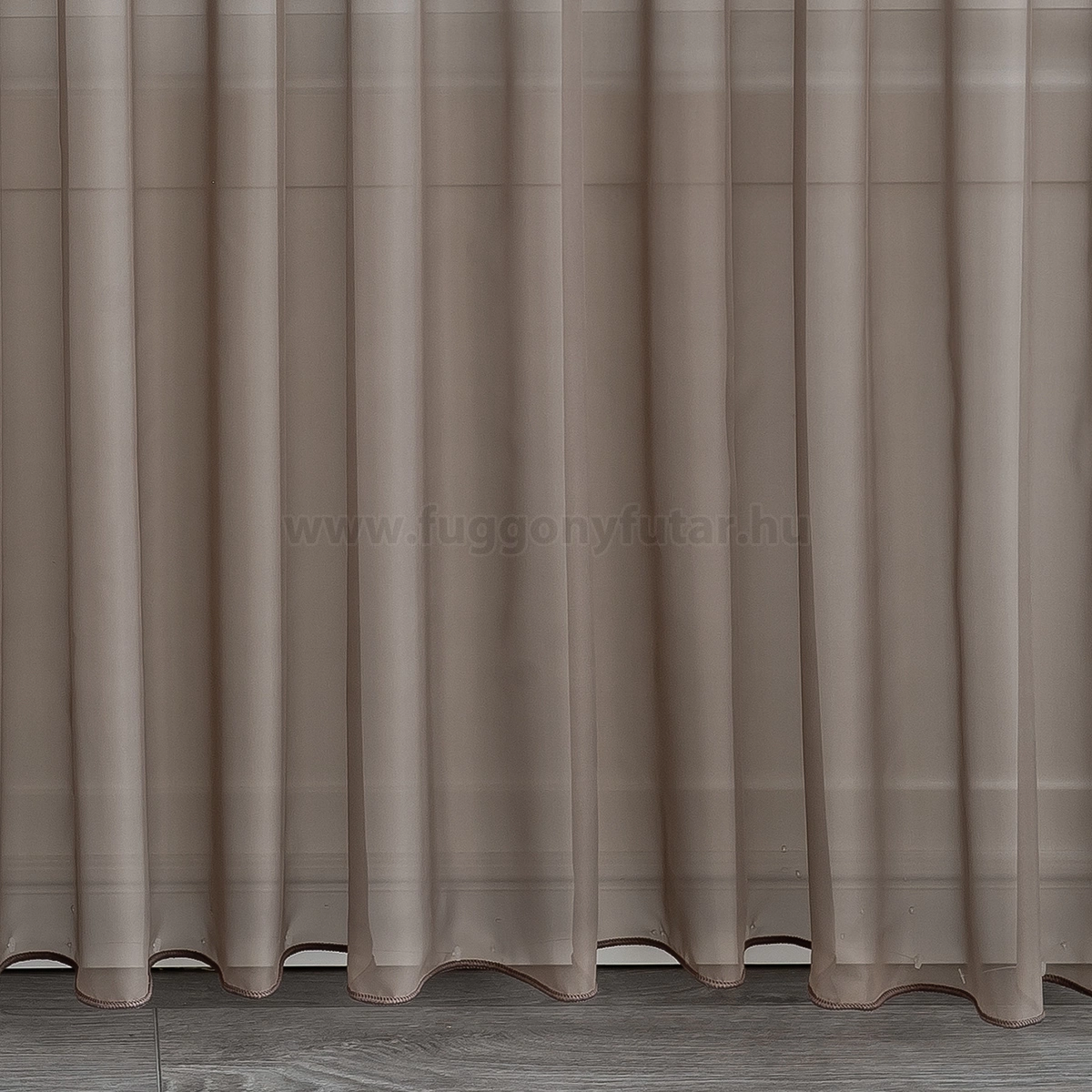 Nugátbarna árnyalatú voile függöny. 180 cm magas.A minta nélküli anyagok univerzálisak, jól passzolnak bármihez A minta nélküli anyagokhoz bármilyen színben harmonizáló mintás anyagot, tapétát remekül párosíthatunk. A barna és terrakotta szín a föld, a kitartás és kifinomultság jelképe A barnákat a kényelem és melegség kifejezésére használhatjuk. Élénk, gazdag árnyalatok alkalmazásával luxust és finomságot sugallhatunk. A barna, terrakotta színű fényáteresztő függönyökhöz általában a sötétbarna, bézs, sárga színű sötétítő és dekorfüggönyök illenek legjobban.Egységes megjelenés ablakon és teraszajtón Problémát jelent, hogy az ablak és az erkélyajtó egy falon van? Ezzel az anyaggal nem! Mivel rövidebb és hosszabb változatban is elérhető, így egységes megjelenést teremthetünk anélkül, hogy kompromisszumot kellene kötnünk.Ez a függöny mediterrán lakberendezési stílushoz jól illeszthető Ez a függöny tökéletesen illeszkedik a mediterrán stílus könnyedségéhez. Anyaga diszkréten simul bele a térbe, miközben kiemeli a helyiség hangulatát. Ideális választás, ha olyan textilt keresünk, amely rugalmasan alkalmazkodik a meglévő bútorokhoz és kiegészítőkhöz.Az otthon melegsége és kényelme Az ősz típusú textíliák a bekuckózós, meleg, hívogató hangulat megteremtésének mesterei. Színviláguk gazdag és földközeli: a rozsdabarna, a mustársárga, a terrakotta, a mélyzöld és a bézs árnyalatai jellemzik. Tökéletes választás a barátságos, gondoskodó személyiségeknek. Anyaga diszkréten simul bele a térbe, miközben kiemeli a helyiség hangulatát. Ideális választás, ha olyan textilt keresünk, amely rugalmasan alkalmazkodik a meglévő bútorokhoz és kiegészítőkhöz.Anyaga: voile Vékony, könnyed, fátyolszerű anyag . Az organzához képest vastagabb szálakból szövik, így kevésbé átlátszó, nehezebben gyűrődik, bár vasalást azért igényel (gőzölős vasalóval viszonylag könnyen, sérülésmentesen vasalható). 1.5x v. 2x-es ráncolással ajánljuk.Normál ablakok függönyözéséhez használható A karnistól a felső szegéshez szükséges anyagot beleszámítva legfeljebb 178 cm hosszú függönyt lehet belőle varrni, ez alatt bármilyen méretben elkészítjük. Méreténél fogva normál méretű ablakok függönyözésére alkalmas. A függöny aljába gyárilag varrt ólomzsinór megfelelő esést kölcsönöz a függönynek, megakadályozza az indokolatlan fellebbenést és az apróbb ráncokat is kisimítja.