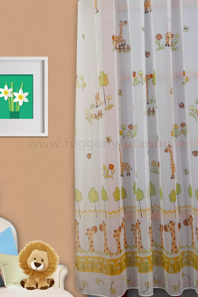 Vidámságot visz a gyerekszobákba, hálószobába és játszószobákba. Használhatjuk a konyhában, hogy energiával töltődjünk fel. Különösen alkalmas északi fekvésű szobákba. A hűvös, semleges szürkék remek ellentéte. Használjuk bátran kiemelésre és hangsúlykeltésre. A sárga mintás fényáteresztő függönyökhöz általában a sötétbarna, sötétkék, bordó, fekete és szürke színű sötétítő és dekorfüggönyök illenek legjobban.A megújulás energiája otthonában A tavasz típusú textíliák frissességet, optimizmust és energiát sugároznak. Színvilágukban a zsenge zöldek, a napsárgák, a barackos árnyalatok és a tiszta kékek dominálnak. Ez a stílus tökéletesen illik a dinamikus, vidám személyiségekhez. Anyaga diszkréten simul bele a térbe, miközben kiemeli a helyiség hangulatát. Ideális választás, ha olyan textilt keresünk, amely rugalmasan alkalmazkodik a meglévő bútorokhoz és kiegészítőkhöz.Anyaga: voile Vékony, könnyed, fátyolszerű anyag . Az organzához képest vastagabb szálakból szövik, így kevésbé átlátszó, nehezebben gyűrődik, bár vasalást azért igényel (gőzölős vasalóval viszonylag könnyen, sérülésmentesen vasalható). 1.5x v. 2x-es ráncolással ajánljuk.Normál ablakok függönyözéséhez használható A karnistól a felső szegéshez szükséges anyagot beleszámítva legfeljebb 178 cm hosszú függönyt lehet belőle varrni, ez alatt bármilyen méretben elkészítjük. Méreténél fogva normál méretű ablakok függönyözésére alkalmas. A függöny aljába gyárilag varrt ólomzsinór megfelelő esést kölcsönöz a függönynek, megakadályozza az indokolatlan fellebbenést és az apróbb ráncokat is kisimítja.