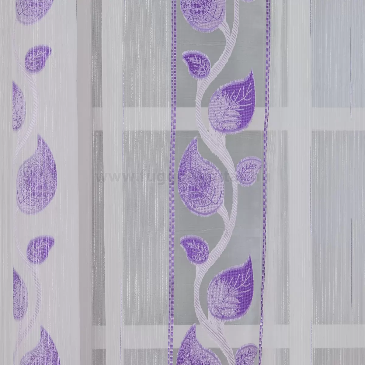 Lila leveles, szálbeszövéses, nyírt voile függöny organza betéttel, 290 cm - egyedi méretre varrjuk!