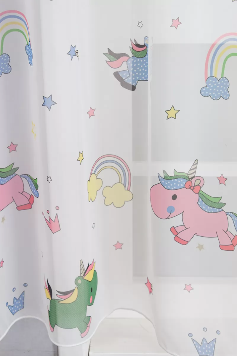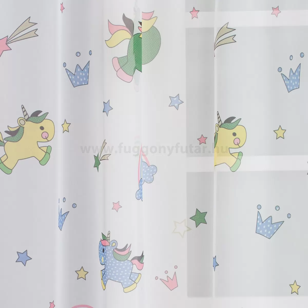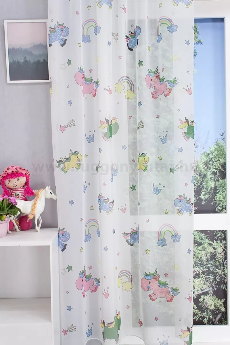 Unikornisos, szivárványos, gyerekszobai voile függöny, 180 cm - egyedi méretre varrjuk!