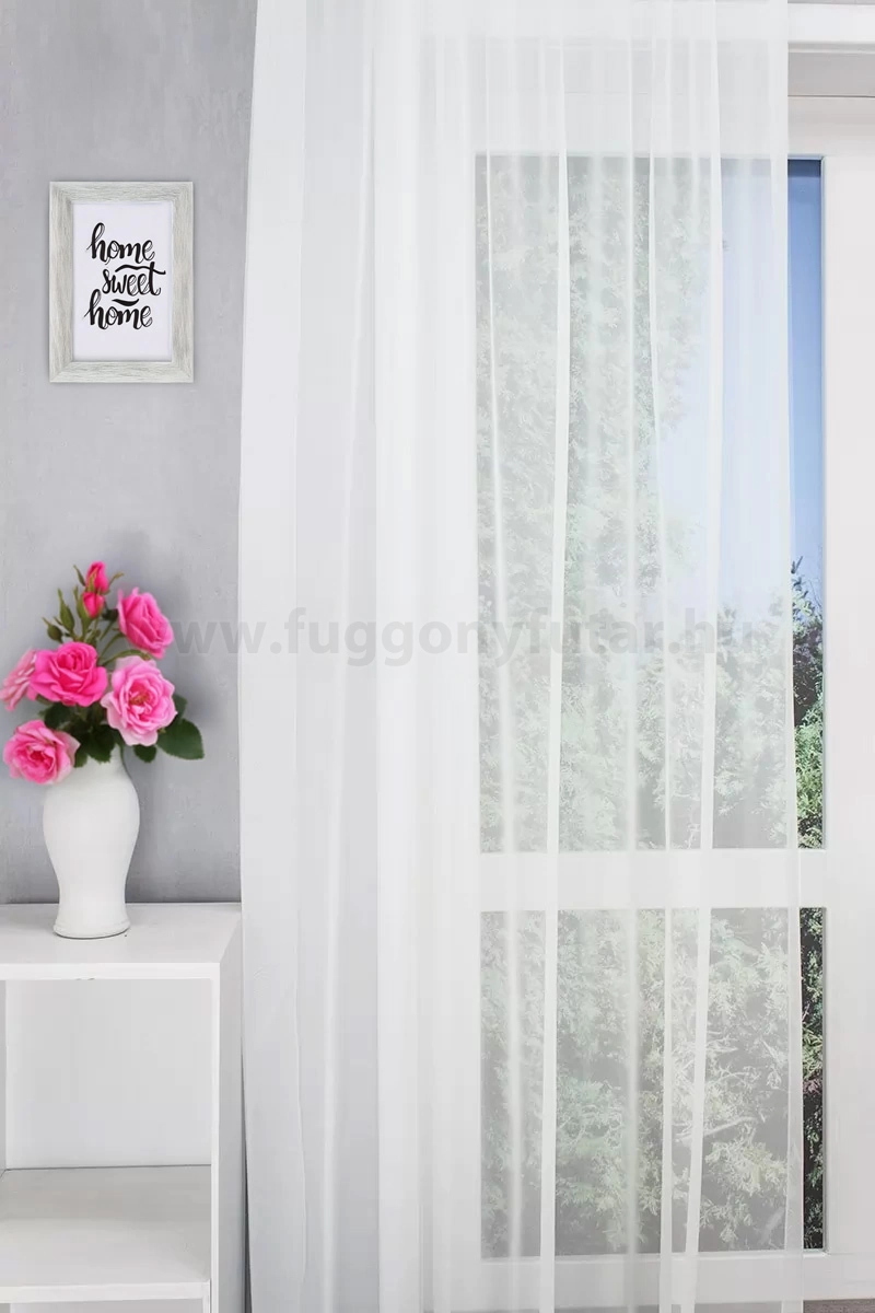 Könnyed hatású ez a fehér voile függöny. Egyenletes szövésű, mindenfajta stílushoz jól illeszthető. Kíméletes mosást igényel.A minta nélküli anyagok univerzálisak, jól passzolnak bármihez A minta nélküli anyagokhoz bármilyen színben harmonizáló mintás anyagot, tapétát remekül párosíthatunk. A fehér szín légies és világos, fényt hoz a szobába A fehér a világosság és a tisztaság színe, egész nap érezhetjük a friss tavaszi szellő simogatását, ha egy szép fehér függöny díszíti az ablakunkat. A fehér színű fényáteresztő függönyöket bármilyen színű sötétítő függönnyel kombinálhatjuk, de a szoba falának színét mindig vegyük figyelembe.Ez a függöny többféle lakberendezési stílushoz is jól illeszthető Ez a függöny több lakberendezési irányzathoz is tökéletesen illeszkedik – legyen szó a mediterrán könnyedségről, a klasszikus eleganciáról, a minimál letisztultságról, az industrial stílus karakteréről vagy a skandináv egyszerűségről. Anyaga diszkréten simul bele a térbe, miközben kiemeli a helyiség hangulatát. Ideális választás, ha olyan textilt keresünk, amely rugalmasan alkalmazkodik a meglévő bútorokhoz és kiegészítőkhöz.A légies elegancia harmóniája A nyár típusú anyagok a kifinomult, hűvös eleganciát képviselik. Színvilágukban a hideg pasztellek, mint a levendula, a menta, a púderrózsaszín és a törtfehérek uralkodnak. Könnyed, szellős anyagaikkal nyugalmat és szofisztikált hangulatot teremtenek. Ideális választás a higgadt, elegáns személyiségeknek. Anyaga diszkréten simul bele a térbe, miközben kiemeli a helyiség hangulatát. Ideális választás, ha olyan textilt keresünk, amely rugalmasan alkalmazkodik a meglévő bútorokhoz és kiegészítőkhöz.Anyaga: voile Vékony, könnyed, fátyolszerű anyag . Az organzához képest vastagabb szálakból szövik, így kevésbé átlátszó, nehezebben gyűrődik, bár vasalást azért igényel (gőzölős vasalóval viszonylag könnyen, sérülésmentesen vasalható). 1.5x v. 2x-es ráncolással ajánljuk.Terasz ajtókhoz, nagyobb ablakok függönyözéséhez jól használható A karnistól a felső szegéshez szükséges anyagot beleszámítva legfeljebb 298 cm hosszú függönyt lehet belőle varrni, ez alatt bármilyen méretben elkészítjük. Méreténél fogva alkalmas lehet terasz- és erkélyajtók, nagy belmagasságú helyiségek valamint normál ablakok függönyözésére is. A függöny aljába gyárilag varrt ólomzsinór megfelelő esést kölcsönöz a függönynek, megakadályozza az indokolatlan fellebbenést és az apróbb ráncokat is kisimítja.