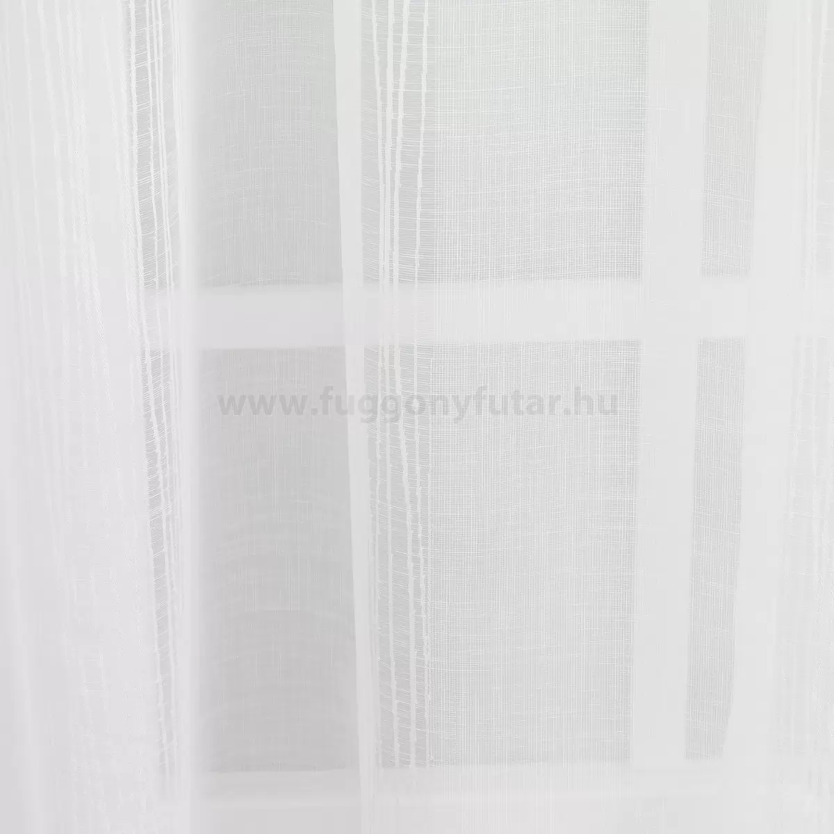 A lakás minden helyiségébe, sokféle stílusó berendezéshez ajánlható ez a hosszanti íves díszítésű, fehér voile függöny. Egyszerű, lágyan hajló íves mintái 15 cm szélesek, egymástól 30 cm távolságra. Az alapnyag változó vastagságú fonalakból készült, a szőtt, nyírt minta erősíti az anyag tartását.A függőleges csíkok izgalmassá teszik a teret Az ilyen függőleges csíkozású anyagokhoz válasszunk egyszínű, szórt vagy virágmintás sötétítőt. Ez a mintázat optikailag nyújtja a teret. A fehér szín légies és világos, fényt hoz a szobába A fehér a világosság és a tisztaság színe, egész nap érezhetjük a friss tavaszi szellő simogatását, ha egy szép fehér függöny díszíti az ablakunkat. A fehér színű fényáteresztő függönyöket bármilyen színű sötétítő függönnyel kombinálhatjuk, de a szoba falának színét mindig vegyük figyelembe.Ez a függöny skandináv lakberendezési stílushoz jól illeszthető Ez a függöny tökéletesen illeszkedik a skandináv stílus egyszerűséghez. Anyaga diszkréten simul bele a térbe, miközben kiemeli a helyiség hangulatát. Ideális választás, ha olyan textilt keresünk, amely rugalmasan alkalmazkodik a meglévő bútorokhoz és kiegészítőkhöz.Anyaga: voile Vékony, könnyed, fátyolszerű anyag . Az organzához képest vastagabb szálakból szövik, így kevésbé átlátszó, nehezebben gyűrődik, bár vasalást azért igényel (gőzölős vasalóval viszonylag könnyen, sérülésmentesen vasalható). 1.5x v. 2x-es ráncolással ajánljuk.Terasz ajtókhoz, nagyobb ablakok függönyözéséhez jól használható A karnistól a felső szegéshez szükséges anyagot beleszámítva legfeljebb 298 cm hosszú függönyt lehet belőle varrni, ez alatt bármilyen méretben elkészítjük. Méreténél fogva alkalmas lehet terasz- és erkélyajtók, nagy belmagasságú helyiségek valamint normál ablakok függönyözésére is. A függöny aljába gyárilag varrt ólomzsinór megfelelő esést kölcsönöz a függönynek, megakadályozza az indokolatlan fellebbenést és az apróbb ráncokat is kisimítja.