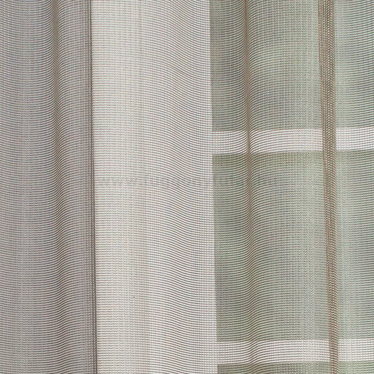 High-tech, minimál stílushoz jól illeszthető ez a rendkívül könnyen kezelhető, fényes felületű függöny. A kereszt és hosszanti szálak is többszörösen sodrott, hurkolt erős fonalakból állnak, melyek kiváló tartást, rugalmasságot biztosítanak. Az arany és fekete fonalak keveredése gazdag, meleg fényt varázsol a felületére. Kíméletes mosás után helyére akasztva szárítható, vasalást nem igényel. A 300 cm-es anyagból 10 cm-t az alsó szegélyhez, 2 cm-t a felső szegélyhez használunk fel, így legfeljebb 288 cm magas függöny varrható belőle.