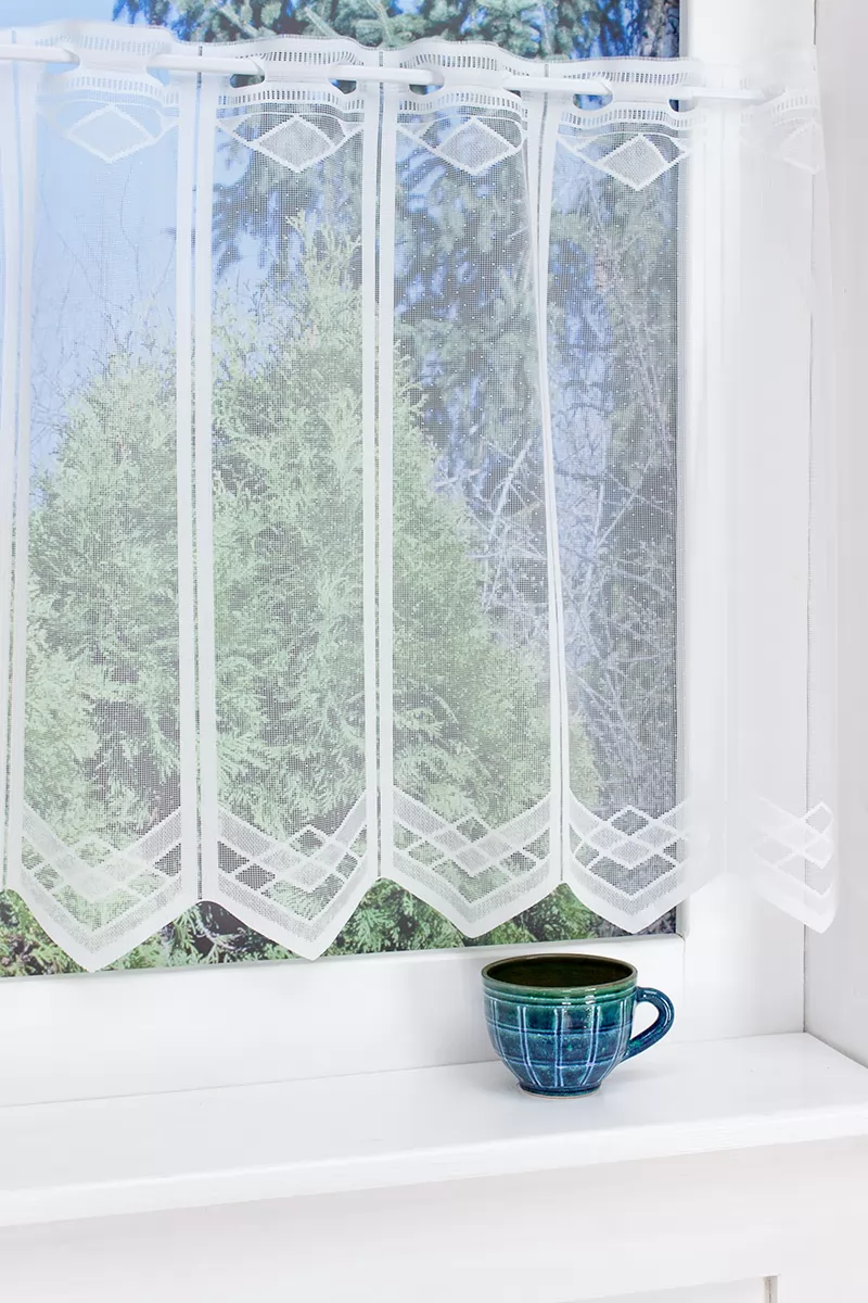 Fehér V mintás jacquard vitrázs függöny, 60 cm - egyedi méretre varrjuk!