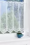 Csipkekötéshez hasonló technikával készült anyag, melyet elsősorban a romantikus vagy klasszikus lakberendezési stílus kedvelőinek ajánlunk. Nem szükséges különösebben vasalni, mosás után elég nedvesen felfüggeszteni, súlya miatt simára szárad (ahogy szokták mondani, "kihúzza" magát). 1.5x-es ráncolással ajánljuk.