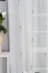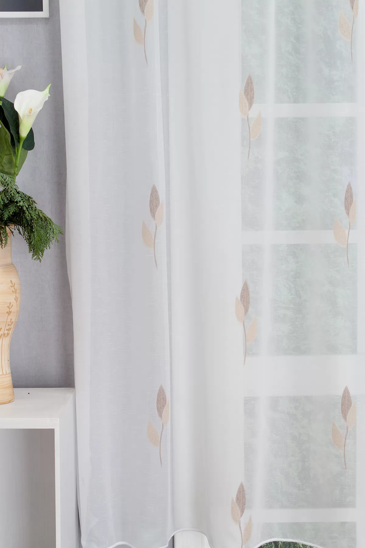 Bonita – Fehér tetra sablet függöny, nyírt, bézs, levél mintával, ólomzsinórral, 300 cm - egyedi méretre varrjuk!