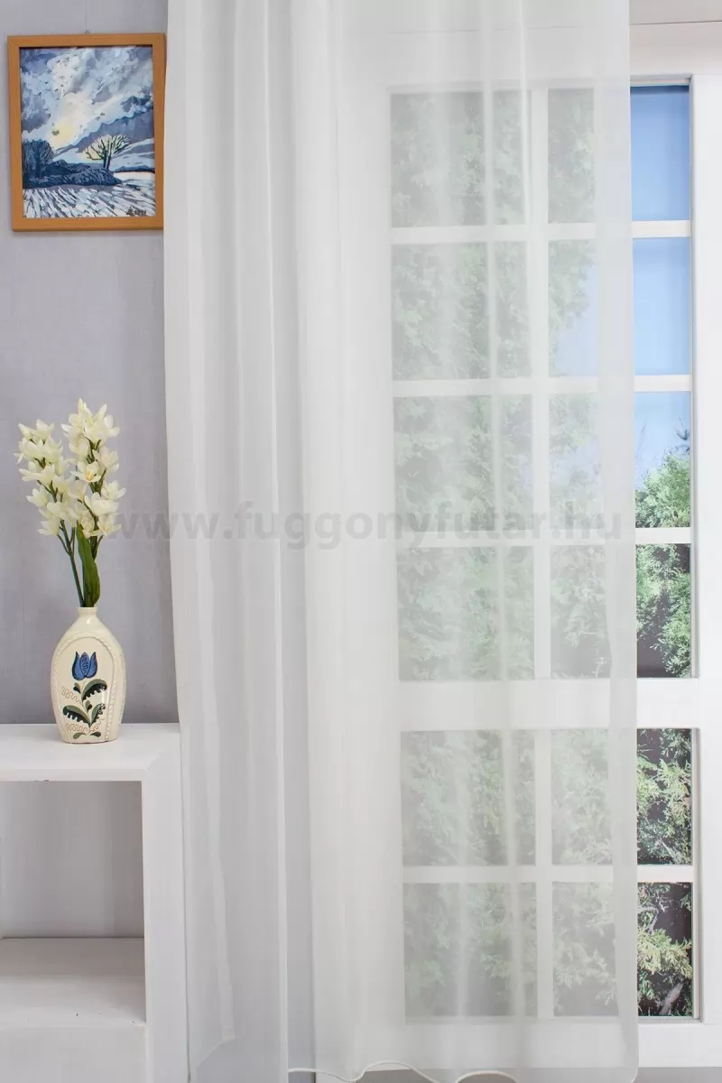 Minden stílushoz jól illik ez a sima, finom szövésű voile függöny. Lángálló bevonata révén szállodákba és éttermekbe is alkalmazható (NF P92-504 1995. standard)A minta nélküli anyagok univerzálisak, jól passzolnak bármihez A minta nélküli anyagokhoz bármilyen színben harmonizáló mintás anyagot, tapétát remekül párosíthatunk. A bézs szín kellemes melegséggel árasztja el szobánkat Ez a meleg, természetes árnyalatú anyag remekül mutat bármilyen térben, amit otthonos, meleg színekkel szeretnénk berendezni. A bézs színű fényáteresztő függönyökhöz általában a sötétbarna, sötétkék, bordó, zöld, narancs, lila és szürke színű sötétítő és dekorfüggönyök illenek legjobban.Égéskésleltetett anyagból készült A lángálló (égéskésleltetett) függöny textíliák legfontosabb tulajdonsága, hogy nem kapnak lángra, nem lángolnak, nem terjesztik a tűzet és nem bocsátnak ki mérgező gázokat, csak egyszerűen elolvadnak. Ez a függöny ilyen lángálló tulajdonsággal rendelkezik, használat és tisztítás következtében sem veszíti el ezt a képességét. Sok közintézményben, a szolgáltató és vendéglátóiparban csak ilyen típusú minősített bizonyítvánnyal rendelkező anyagok használhatók függönyözésre. Kiemelten ajánljuk irodáknak, konferenciahelyiségeknek, egészségügyi és oktatási intézményeknek, színházaknak és mozi termeknek, illetve vendéglátóhelyeknek – szállodáknak és éttermeknek.Ez a függöny többféle lakberendezési stílushoz is jól illeszthető Ez a függöny több lakberendezési irányzathoz is tökéletesen illeszkedik – legyen szó a skandináv egyszerűségről, a klasszikus eleganciáról vagy a minimál letisztultságról. Anyaga diszkréten simul bele a térbe, miközben kiemeli a helyiség hangulatát. Ideális választás, ha olyan textilt keresünk, amely rugalmasan alkalmazkodik a meglévő bútorokhoz és kiegészítőkhöz.A megújulás energiája otthonában A tavasz típusú textíliák frissességet, optimizmust és energiát sugároznak. Színvilágukban a zsenge zöldek, a napsárgák, a barackos árnyalatok és a tiszta kékek dominálnak. Ez a stílus tökéletesen illik a dinamikus, vidám személyiségekhez. Anyaga diszkréten simul bele a térbe, miközben kiemeli a helyiség hangulatát. Ideális választás, ha olyan textilt keresünk, amely rugalmasan alkalmazkodik a meglévő bútorokhoz és kiegészítőkhöz.Anyaga: voile Vékony, könnyed, fátyolszerű anyag . Az organzához képest vastagabb szálakból szövik, így kevésbé átlátszó, nehezebben gyűrődik, bár vasalást azért igényel (gőzölős vasalóval viszonylag könnyen, sérülésmentesen vasalható). 1.5x v. 2x-es ráncolással ajánljuk.Terasz ajtókhoz, nagyobb ablakok függönyözéséhez jól használható A karnistól a felső szegéshez szükséges anyagot beleszámítva legfeljebb 298 cm hosszú függönyt lehet belőle varrni, ez alatt bármilyen méretben elkészítjük. Méreténél fogva alkalmas lehet terasz- és erkélyajtók, nagy belmagasságú helyiségek valamint normál ablakok függönyözésére is. A függöny aljába gyárilag varrt ólomzsinór megfelelő esést kölcsönöz a függönynek, megakadályozza az indokolatlan fellebbenést és az apróbb ráncokat is kisimítja.