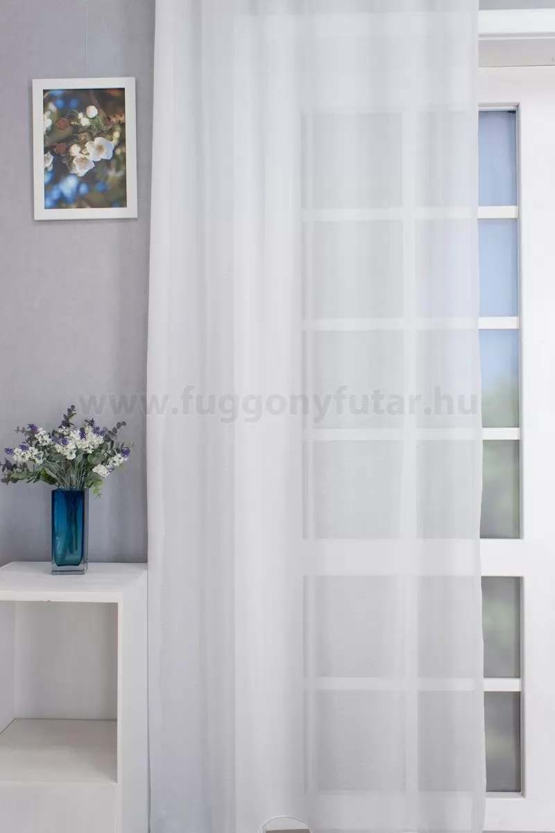 Fehér színű sablé függöny rusztikus, minimál és vintage stílusú berendezésekhez.A minta nélküli anyagok univerzálisak, jól passzolnak bármihez A minta nélküli anyagokhoz bármilyen színben harmonizáló mintás anyagot, tapétát remekül párosíthatunk. A fehér szín légies és világos, fényt hoz a szobába A fehér a világosság és a tisztaság színe, egész nap érezhetjük a friss tavaszi szellő simogatását, ha egy szép fehér függöny díszíti az ablakunkat. A fehér színű fényáteresztő függönyöket bármilyen színű sötétítő függönnyel kombinálhatjuk, de a szoba falának színét mindig vegyük figyelembe.Egységes megjelenés ablakon és teraszajtón Problémát jelent, hogy az ablak és az erkélyajtó egy falon van? Ezzel az anyaggal nem! Mivel rövidebb és hosszabb változatban is elérhető, így egységes megjelenést teremthetünk anélkül, hogy kompromisszumot kellene kötnünk.Ez a függöny többféle lakberendezési stílushoz is jól illeszthető Ez a függöny több lakberendezési irányzathoz is tökéletesen illeszkedik – legyen szó a skandináv egyszerűségről, a mediterrán könnyedségről, a klasszikus eleganciáról vagy a minimál letisztultságról. Anyaga diszkréten simul bele a térbe, miközben kiemeli a helyiség hangulatát. Ideális választás, ha olyan textilt keresünk, amely rugalmasan alkalmazkodik a meglévő bútorokhoz és kiegészítőkhöz.Anyaga: sablé Változó vastagságú szálakból szőtt anyag. Kevésbé hajlamos a gyűrődésre , mint a voile. 1.5x-es ráncolással ajánljuk.Terasz ajtókhoz, nagyobb ablakok függönyözéséhez jól használható A karnistól a felső szegéshez szükséges anyagot beleszámítva legfeljebb 318 cm hosszú függönyt lehet belőle varrni, ez alatt bármilyen méretben elkészítjük. Méreténél fogva alkalmas lehet terasz- és erkélyajtók, nagy belmagasságú helyiségek valamint normál ablakok függönyözésére is.
