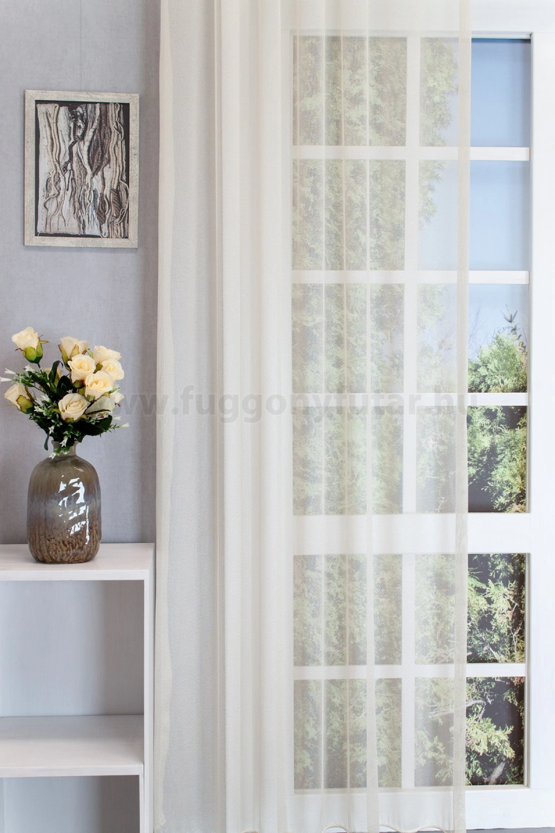 Univerzális, bárhol jól alkalmazható ez az erős, fényes szálú jacquard függöny. Kedvező ára is népszerűvé teszi. A meleg, világos krém szín jól mutat a sötétebb, barna bútorok között is. Kímélő mosás után helyére akasztva szárítható, gőzölős vasalóval simítható. A minta nélküli anyagok univerzálisak, jól passzolnak bármihez A minta nélküli anyagokhoz bármilyen színben harmonizáló mintás anyagot, tapétát remekül párosíthatunk. A bézs szín kellemes melegséggel árasztja el szobánkat Ez a meleg, természetes árnyalatú anyag remekül mutat bármilyen térben, amit otthonos, meleg színekkel szeretnénk berendezni. A bézs színű fényáteresztő függönyökhöz általában a sötétbarna, sötétkék, bordó, zöld, narancs, lila és szürke színű sötétítő és dekorfüggönyök illenek legjobban.Egységes megjelenés ablakon és teraszajtón Problémát jelent, hogy az ablak és az erkélyajtó egy falon van? Ezzel az anyaggal nem! Mivel rövidebb és hosszabb változatban is elérhető, így egységes megjelenést teremthetünk anélkül, hogy kompromisszumot kellene kötnünk.Ez a függöny többféle lakberendezési stílushoz is jól illeszthető Ez a függöny több lakberendezési irányzathoz is tökéletesen illeszkedik – legyen szó a minimál letisztultságról vagy a klasszikus eleganciáról. Anyaga diszkréten simul bele a térbe, miközben kiemeli a helyiség hangulatát. Ideális választás, ha olyan textilt keresünk, amely rugalmasan alkalmazkodik a meglévő bútorokhoz és kiegészítőkhöz.Az otthon melegsége és kényelme Az ősz típusú textíliák a bekuckózós, meleg, hívogató hangulat megteremtésének mesterei. Színviláguk gazdag és földközeli: a rozsdabarna, a mustársárga, a terrakotta, a mélyzöld és a bézs árnyalatai jellemzik. Tökéletes választás a barátságos, gondoskodó személyiségeknek. Anyaga diszkréten simul bele a térbe, miközben kiemeli a helyiség hangulatát. Ideális választás, ha olyan textilt keresünk, amely rugalmasan alkalmazkodik a meglévő bútorokhoz és kiegészítőkhöz.Anyaga: jacquard Csipkekötéshez hasonló technikával készült anyag, melyet elsősorban a romantikus vagy klasszikus lakberendezési stílus kedvelőinek ajánlunk. Nem szükséges különösebben vasalni , mosás után elég nedvesen felfüggeszteni, súlya miatt simára szárad (ahogy szokták mondani, "kihúzza" magát). 1.5x-es ráncolással ajánljuk.Terasz ajtókhoz, nagyobb ablakok függönyözéséhez jól használható A karnistól a felső szegéshez szükséges anyagot beleszámítva legfeljebb 288 cm hosszú függönyt lehet belőle varrni, ez alatt bármilyen méretben elkészítjük. Méreténél fogva alkalmas lehet terasz- és erkélyajtók, nagy belmagasságú helyiségek valamint normál ablakok függönyözésére is. A függöny aljába gyárilag varrt ólomzsinór megfelelő esést kölcsönöz a függönynek, megakadályozza az indokolatlan fellebbenést és az apróbb ráncokat is kisimítja.