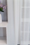 Rusztikus stílusú berendezések érdekes kiegészítője lehet ez a gyűrt felületű, ekrü színű voile függöny. Az apró ráncok érdekes mintázatot alkotnak, jó tartást adnak, könnyen kezelhetővé teszik az anyagot. Alul ólomzsinór nehezíti. Kedvező ára nagy felületen is gazdaságossá teszi az alkalmazását. Kímélő mosás után helyére akasztva szárítható, gőzölős vasalóval simítható.