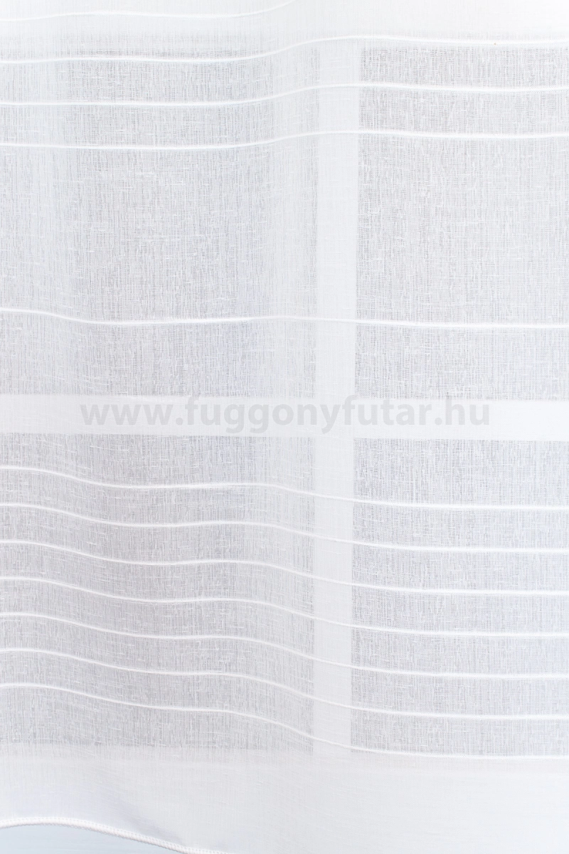 A függőleges csíkok izgalmassá teszik a teret Az ilyen függőleges csíkozású anyagokhoz válasszunk egyszínű, szórt vagy virágmintás sötétítőt. Ez a mintázat optikailag nyújtja a teret. A fehér szín légies és világos, fényt hoz a szobába A fehér a világosság és a tisztaság színe, egész nap érezhetjük a friss tavaszi szellő simogatását, ha egy szép fehér függöny díszíti az ablakunkat. A fehér színű fényáteresztő függönyöket bármilyen színű sötétítő függönnyel kombinálhatjuk, de a szoba falának színét mindig vegyük figyelembe.Ez a függöny skandináv lakberendezési stílushoz jól illeszthető Ez a függöny tökéletesen illeszkedik a skandináv stílus egyszerűséghez. Anyaga diszkréten simul bele a térbe, miközben kiemeli a helyiség hangulatát. Ideális választás, ha olyan textilt keresünk, amely rugalmasan alkalmazkodik a meglévő bútorokhoz és kiegészítőkhöz.Drámai és luxus hatás A tél típusú anyagok merészek, elegánsak és egy csipetnyi drámát visznek a térbe. Színvilágukban az éles kontrasztok és a mély, gazdag ékszertónusok dominálnak, mint a smaragdzöld, a zafírkék, a rubinvörös, kiegészítve a feketével, fehérrel és fémes csillogással. Ideális a magabiztos, kifinomult személyiségeknek. Anyaga diszkréten simul bele a térbe, miközben kiemeli a helyiség hangulatát. Ideális választás, ha olyan textilt keresünk, amely rugalmasan alkalmazkodik a meglévő bútorokhoz és kiegészítőkhöz.Anyaga: sablé Változó vastagságú szálakból szőtt anyag. Kevésbé hajlamos a gyűrődésre , mint a voile. 1.5x-es ráncolással ajánljuk.Terasz ajtókhoz, nagyobb ablakok függönyözéséhez jól használható A karnistól a felső szegéshez szükséges anyagot beleszámítva legfeljebb 308 cm hosszú függönyt lehet belőle varrni, ez alatt bármilyen méretben elkészítjük. Méreténél fogva alkalmas lehet terasz- és erkélyajtók, nagy belmagasságú helyiségek valamint normál ablakok függönyözésére is. A függöny aljába gyárilag varrt ólomzsinór megfelelő esést kölcsönöz a függönynek, megakadályozza az indokolatlan fellebbenést és az apróbb ráncokat is kisimítja.