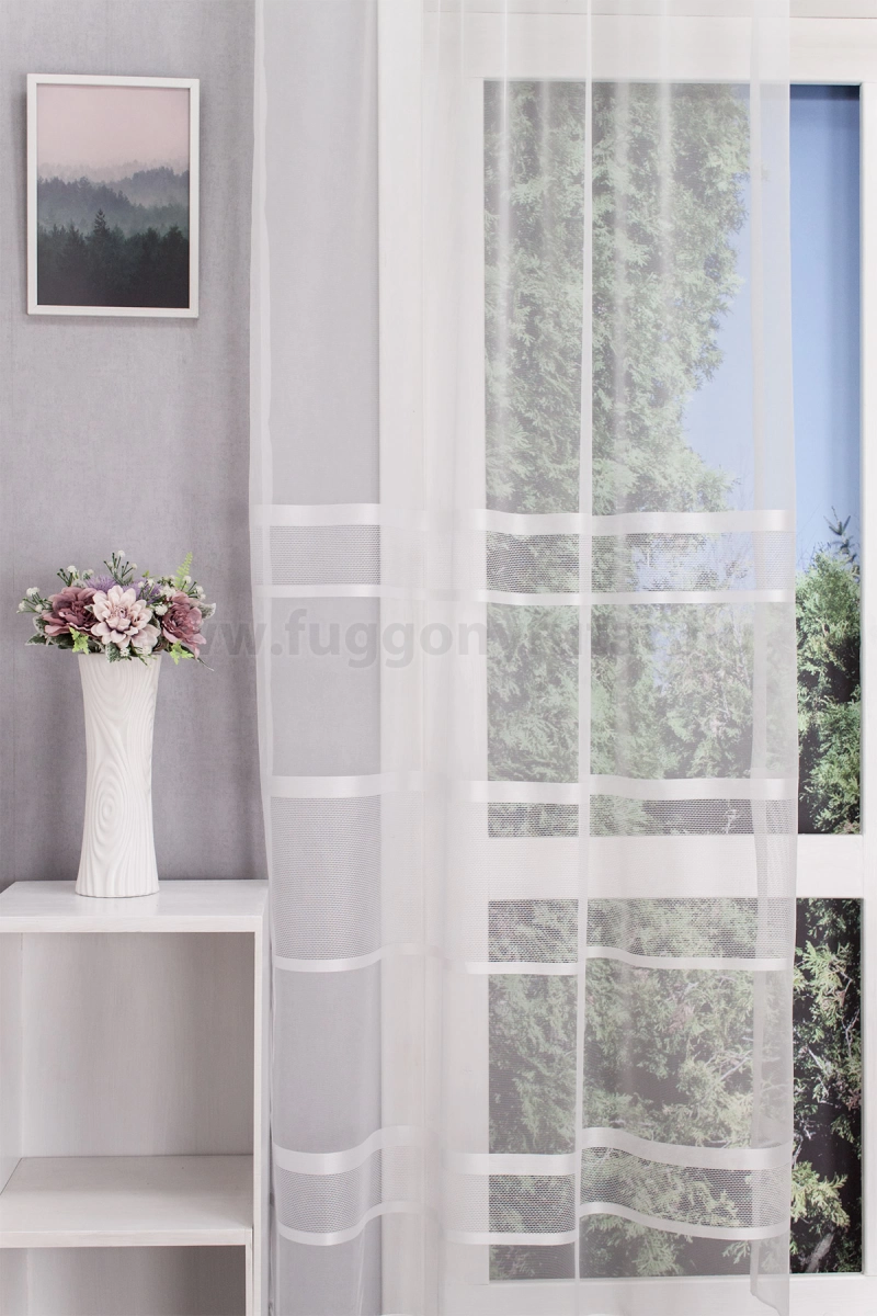 Zorka - Csíkos, azsúrozott hatású ,fehér színű, vékonyabb fonalú dreher sablet függöny, ólomzsinóros, 290 cm - egyedi méretre varrjuk! KIFUTÓ MODELL!