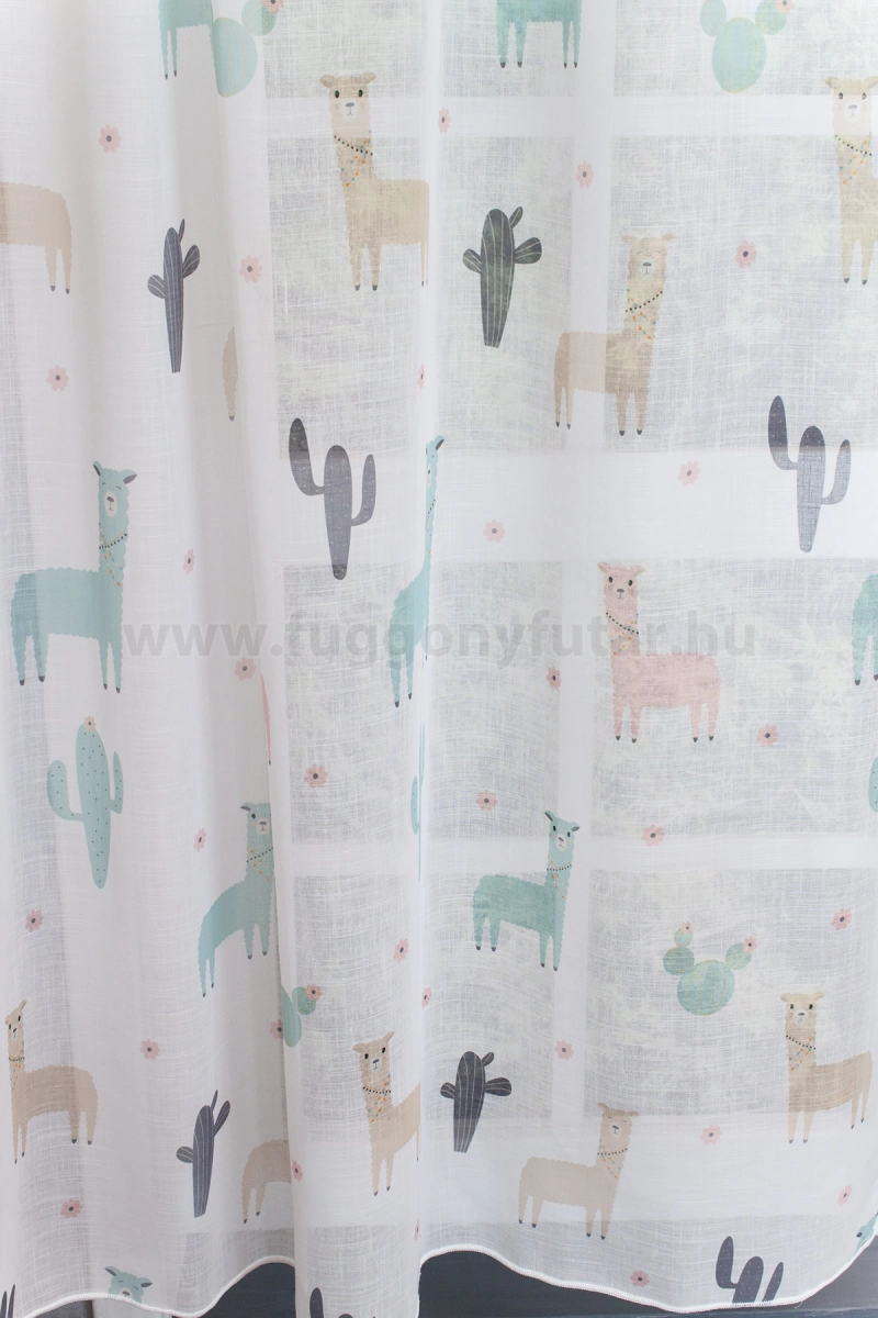 Iskolás gyerekek szobáját Dél-Amerikába varázsolja, kaktuszok, lámák közé., Világoszöld, bézs színeivel nyugtató hangulatot áraszt. Alul ólomzsinór biztosít kellő tartást.Tetrasablet anyaga jól kezelhető. Kímélő mosás után helyére akasztva szárítható, gőzölős vasalóval simítható. Egy mintás anyag a legegyszerűbb szobát is dekoratívvá varázsolja Dobjuk fel a szobánkat vagy konyhánkat egy különleges, mintás függönnyel! A zsúfoltság elkerülése érdekében egyszínű, minta nélküli fallal, illetve más textilekkel kombináljuk. Hozza közel a természetet a zöld szín segítségével! Friss és természetközeli szín. A természetet, az újrakezdést és az egészséget szimbolizálja. Segít frissen és harmonikusan tartani a szobát. Használjuk a konyhában és a közösségi terekben. A zöld mintás fényáteresztő függönyökhöz általában a sötétbarna, zöld, bézs, ekrü és sárga színű sötétítő és dekorfüggönyök illenek legjobban.A megújulás energiája otthonában A tavasz típusú textíliák frissességet, optimizmust és energiát sugároznak. Színvilágukban a zsenge zöldek, a napsárgák, a barackos árnyalatok és a tiszta kékek dominálnak. Ez a stílus tökéletesen illik a dinamikus, vidám személyiségekhez. Anyaga diszkréten simul bele a térbe, miközben kiemeli a helyiség hangulatát. Ideális választás, ha olyan textilt keresünk, amely rugalmasan alkalmazkodik a meglévő bútorokhoz és kiegészítőkhöz.Anyaga: sablé Változó vastagságú szálakból szőtt anyag. Kevésbé hajlamos a gyűrődésre , mint a voile. 1.5x-es ráncolással ajánljuk.Terasz ajtókhoz, nagyobb ablakok függönyözéséhez jól használható A karnistól a felső szegéshez szükséges anyagot beleszámítva legfeljebb 298 cm hosszú függönyt lehet belőle varrni, ez alatt bármilyen méretben elkészítjük. Méreténél fogva alkalmas lehet terasz- és erkélyajtók, nagy belmagasságú helyiségek valamint normál ablakok függönyözésére is. A függöny aljába gyárilag varrt ólomzsinór megfelelő esést kölcsönöz a függönynek, megakadályozza az indokolatlan fellebbenést és az apróbb ráncokat is kisimítja.Vasalást kevésbé igénylő anyag Az anyag kevesebb vasalást igényel, mint az átlag függöny. Sokszor elég, ha mosás után még nedvesen a helyükre akasztjuk, így kilógva magát a ráncok kisimulnak és a függönyünk teljes pompájában ragyog!