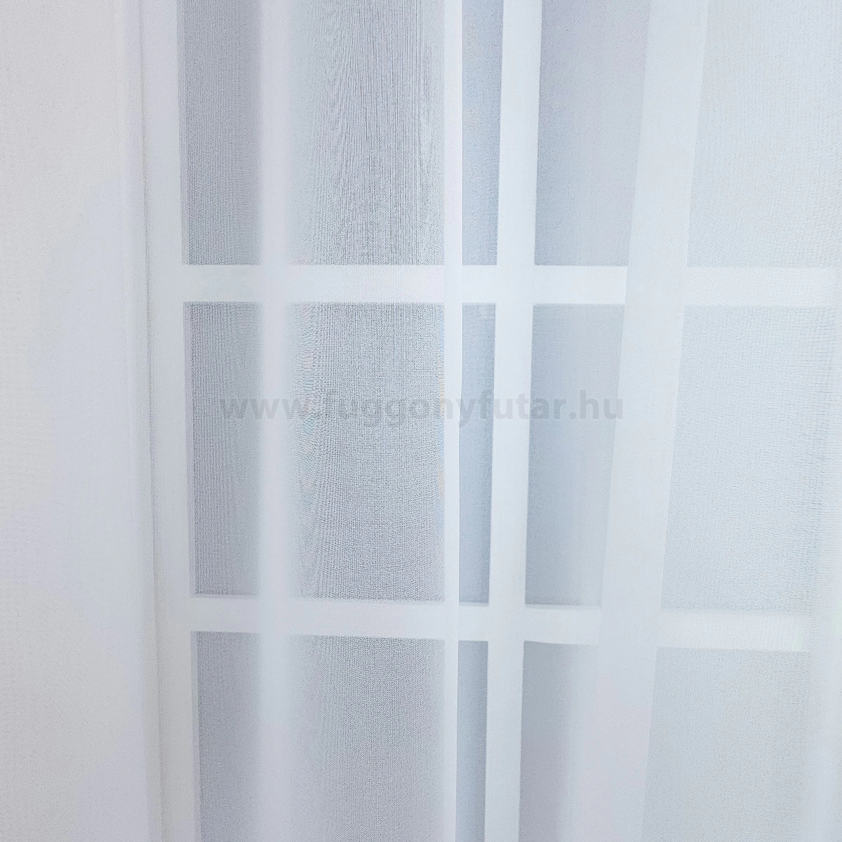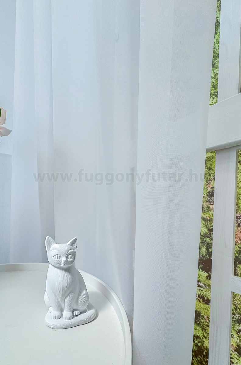 A minta nélküli anyagok univerzálisak, jól passzolnak bármihez A minta nélküli anyagokhoz bármilyen színben harmonizáló mintás anyagot, tapétát remekül párosíthatunk. A fehér szín légies és világos, fényt hoz a szobába A fehér a világosság és a tisztaság színe, egész nap érezhetjük a friss tavaszi szellő simogatását, ha egy szép fehér függöny díszíti az ablakunkat. A fehér színű fényáteresztő függönyöket bármilyen színű sötétítő függönnyel kombinálhatjuk, de a szoba falának színét mindig vegyük figyelembe.Ez a függöny többféle lakberendezési stílushoz is jól illeszthető Ez a függöny több lakberendezési irányzathoz is tökéletesen illeszkedik – legyen szó a minimál letisztultságról, a klasszikus eleganciáról, az industrial stílus karakteréről, a skandináv egyszerűségről, a mediterrán könnyedségről vagy az Art deco ragyogásáról. Anyaga diszkréten simul bele a térbe, miközben kiemeli a helyiség hangulatát. Ideális választás, ha olyan textilt keresünk, amely rugalmasan alkalmazkodik a meglévő bútorokhoz és kiegészítőkhöz.Anyaga: voile Vékony, könnyed, fátyolszerű anyag . Az organzához képest vastagabb szálakból szövik, így kevésbé átlátszó, nehezebben gyűrődik, bár vasalást azért igényel (gőzölős vasalóval viszonylag könnyen, sérülésmentesen vasalható). 1.5x v. 2x-es ráncolással ajánljuk.Terasz ajtókhoz, nagyobb ablakok függönyözéséhez jól használható A karnistól a felső szegéshez szükséges anyagot beleszámítva legfeljebb 298 cm hosszú függönyt lehet belőle varrni, ez alatt bármilyen méretben elkészítjük. Méreténél fogva alkalmas lehet terasz- és erkélyajtók, nagy belmagasságú helyiségek valamint normál ablakok függönyözésére is. A függöny aljába gyárilag varrt ólomzsinór megfelelő esést kölcsönöz a függönynek, megakadályozza az indokolatlan fellebbenést és az apróbb ráncokat is kisimítja.