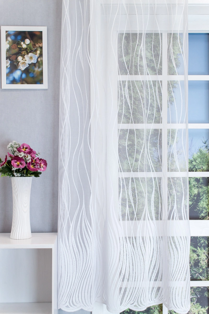 Nagyon jól kezelhető ez a fehér jacquard függöny. Lendületes, íves mintája égfelé törő növény indákra emlékeztet. Az alsó részén lévő sűrűbb minta jó tartást biztosít. Stílusa illeszthető a hagyományos és a modern bútorok közé is. Kímélő mosás után helyére akasztva szárítható, gőzölős vasalóval simítható. Teremtsünk romantikus hangulatot szobánkba ezzel a kellemes, növényi mintás anyaggal! A növényi minták mindig is népszerűek voltak a textiltervezők és lakberendezők körében, hiszen barátságossá és természetközelivé teszik otthonunkat. Egyszínű, színben harmonizáló textilekkel kombinálva romantikus stílust és kiegyensúlyozott megjelenést kölcsönözhetünk helyiségünknek. A fehér szín légies és világos, fényt hoz a szobába A fehér a világosság és a tisztaság színe, egész nap érezhetjük a friss tavaszi szellő simogatását, ha egy szép fehér függöny díszíti az ablakunkat. A fehér színű fényáteresztő függönyöket bármilyen színű sötétítő függönnyel kombinálhatjuk, de a szoba falának színét mindig vegyük figyelembe.Ez a függöny többféle lakberendezési stílushoz is jól illeszthető Ez a függöny több lakberendezési irányzathoz is tökéletesen illeszkedik – legyen szó a klasszikus eleganciáról vagy a vintage nosztalgiáról. Anyaga diszkréten simul bele a térbe, miközben kiemeli a helyiség hangulatát. Ideális választás, ha olyan textilt keresünk, amely rugalmasan alkalmazkodik a meglévő bútorokhoz és kiegészítőkhöz.Anyaga: jacquard Csipkekötéshez hasonló technikával készült anyag, melyet elsősorban a romantikus vagy klasszikus lakberendezési stílus kedvelőinek ajánlunk. Nem szükséges különösebben vasalni , mosás után elég nedvesen felfüggeszteni, súlya miatt simára szárad (ahogy szokták mondani, "kihúzza" magát). 1.5x-es ráncolással ajánljuk.Normál ablakok függönyözéséhez használható A karnistól a felső szegéshez szükséges anyagot beleszámítva legfeljebb 178 cm hosszú függönyt lehet belőle varrni, ez alatt bármilyen méretben elkészítjük. Méreténél fogva normál méretű ablakok függönyözésére alkalmas. Alsó szegélye hullámos, melyhez nagyobb díszítősáv (bordűr) párosul, ólomzsinór nem található benne.