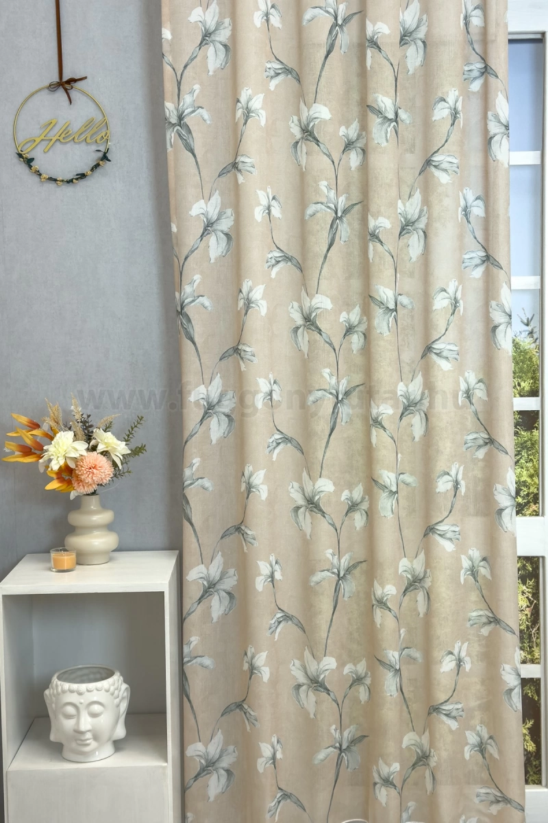 Teremtsünk romantikus hangulatot szobánkba ezzel a kellemes, virágmintás anyaggal! A virágminták vagy növényi minták mindig is népszerűek voltak a textiltervezők és lakberendezők körében, hiszen barátságossá és természetközelivé teszik otthonunkat. Egyszínű, színben harmonizáló textilekkel kombinálva romantikus stílust és kiegyensúlyozott megjelenést kölcsönözhetünk helyiségünknek. A bézs szín kellemes melegséggel árasztja el szobánkat Ez a meleg, természetes árnyalatú anyag remekül mutat bármilyen térben, amit otthonos, meleg színekkel szeretnénk berendezni. A bézs színű fényáteresztő függönyökhöz általában a sötétbarna, sötétkék, bordó, zöld, narancs, lila és szürke színű sötétítő és dekorfüggönyök illenek legjobban.Ez a függöny többféle lakberendezési stílushoz is jól illeszthető Ez a függöny több lakberendezési irányzathoz is tökéletesen illeszkedik – legyen szó a skandináv egyszerűségről, a vintage nosztalgiáról vagy a mediterrán könnyedségről. Anyaga diszkréten simul bele a térbe, miközben kiemeli a helyiség hangulatát. Ideális választás, ha olyan textilt keresünk, amely rugalmasan alkalmazkodik a meglévő bútorokhoz és kiegészítőkhöz.Anyaga: sablé Változó vastagságú szálakból szőtt anyag. Kevésbé hajlamos a gyűrődésre , mint a voile. 1.5x-es ráncolással ajánljuk.Terasz ajtókhoz, nagyobb ablakok függönyözéséhez jól használható A karnistól a felső szegéshez szükséges anyagot beleszámítva legfeljebb 298 cm hosszú függönyt lehet belőle varrni, ez alatt bármilyen méretben elkészítjük. Méreténél fogva alkalmas lehet terasz- és erkélyajtók, nagy belmagasságú helyiségek valamint normál ablakok függönyözésére is. A függöny aljába gyárilag varrt ólomzsinór megfelelő esést kölcsönöz a függönynek, megakadályozza az indokolatlan fellebbenést és az apróbb ráncokat is kisimítja.Vasalást kevésbé igénylő anyag Az anyag kevesebb vasalást igényel, mint az átlag függöny. Sokszor elég, ha mosás után még nedvesen a helyükre akasztjuk, így kilógva magát a ráncok kisimulnak és a függönyünk teljes pompájában ragyog!