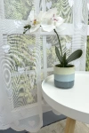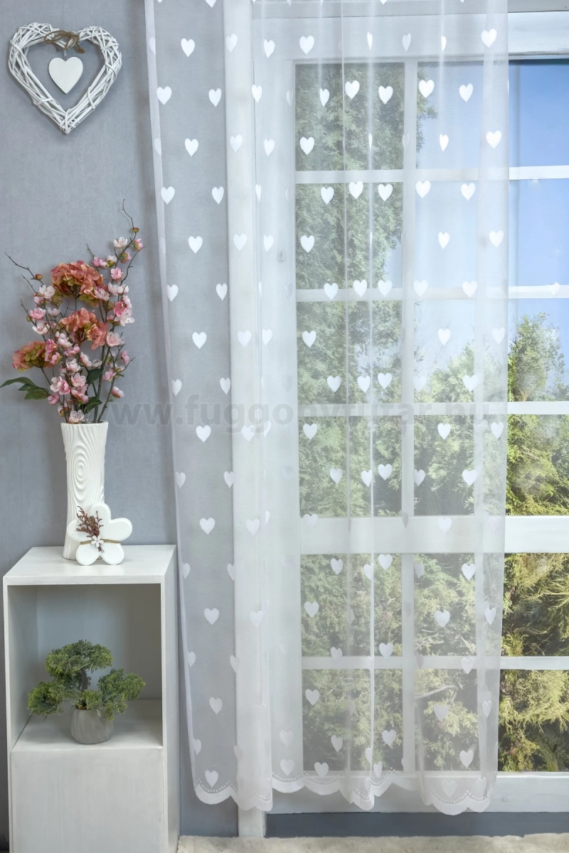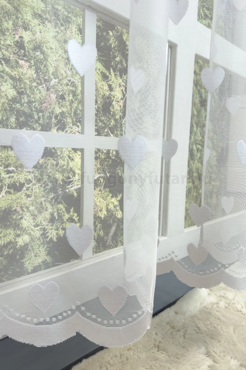 Egy mintás anyag a legegyszerűbb szobát is dekoratívvá varázsolja Dobjuk fel a szobánkat vagy konyhánkat egy különleges, mintás függönnyel! A zsúfoltság elkerülése érdekében egyszínű, minta nélküli fallal, illetve más textilekkel kombináljuk. A fehér szín légies és világos, fényt hoz a szobába A fehér a világosság és a tisztaság színe, egész nap érezhetjük a friss tavaszi szellő simogatását, ha egy szép fehér függöny díszíti az ablakunkat. A fehér színű fényáteresztő függönyöket bármilyen színű sötétítő függönnyel kombinálhatjuk, de a szoba falának színét mindig vegyük figyelembe.Ez a függöny többféle lakberendezési stílushoz is jól illeszthető Ez a függöny több lakberendezési irányzathoz is tökéletesen illeszkedik – legyen szó a vintage nosztalgiáról, a mediterrán könnyedségről vagy a skandináv egyszerűségről. Anyaga diszkréten simul bele a térbe, miközben kiemeli a helyiség hangulatát. Ideális választás, ha olyan textilt keresünk, amely rugalmasan alkalmazkodik a meglévő bútorokhoz és kiegészítőkhöz.Anyaga: jacquard Csipkekötéshez hasonló technikával készült anyag, melyet elsősorban a romantikus vagy klasszikus lakberendezési stílus kedvelőinek ajánlunk. Nem szükséges különösebben vasalni , mosás után elég nedvesen felfüggeszteni, súlya miatt simára szárad (ahogy szokták mondani, "kihúzza" magát). 1.5x-es ráncolással ajánljuk.Terasz ajtókhoz, nagyobb ablakok függönyözéséhez jól használható A karnistól a felső szegéshez szükséges anyagot beleszámítva legfeljebb 298 cm hosszú függönyt lehet belőle varrni, ez alatt bármilyen méretben elkészítjük. Méreténél fogva alkalmas lehet terasz- és erkélyajtók, nagy belmagasságú helyiségek valamint normál ablakok függönyözésére is. Alsó szegélye hullámos, melyhez nagyobb díszítősáv (bordűr) párosul, ólomzsinór nem található benne.Vasalást kevésbé igénylő anyag Az anyag kevesebb vasalást igényel, mint az átlag függöny. Sokszor elég, ha mosás után még nedvesen a helyükre akasztjuk, így kilógva magát a ráncok kisimulnak és a függönyünk teljes pompájában ragyog!