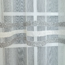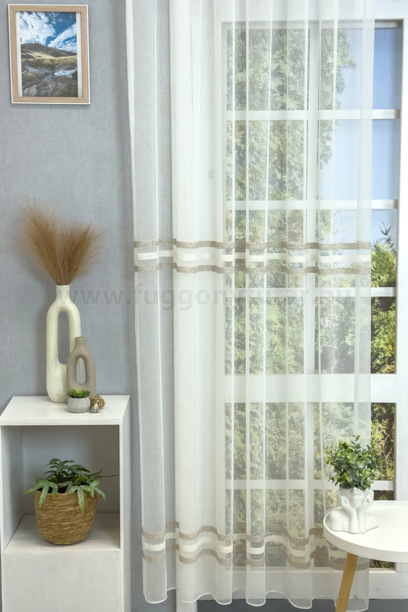 Ekrü színű vasalókímélő sablé függöny bézs-fehér buklé csíkokkal, 300 cm - egyedi méretre varrjuk!