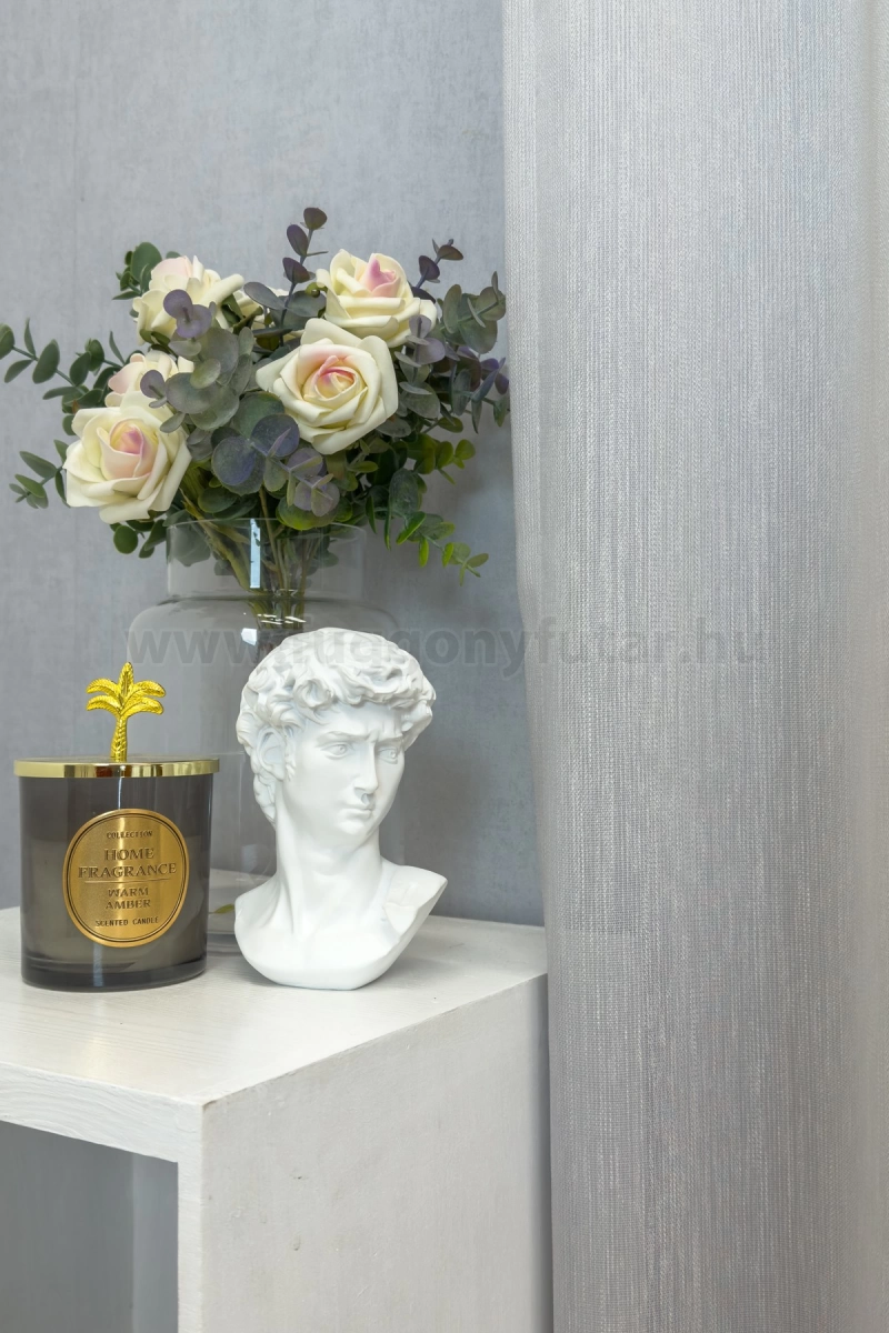 A szórt mintás anyagok izgalmas felülete bármely helyiségben jól mutat Az anyag teljes felületén elszórtan megjelenő ritkább-sűrűbb szálbeszövések izgalmas felületet hoznak létre. Bármilyen, színben harmonizáló, mintás anyagot remekül párosíthatunk hozzá. Semleges és elegáns szürke A szürke semleges és elegáns. Stabilitást képvisel. Bármely élénk színnel jól kombinálható, de azt ne vigyük túlzásba. A szürke színű fényáteresztő függönyökhöz általában a narancs, sötétkék, bordó, lila és szürke színű sötétítő és dekorfüggönyök illenek legjobban.Ez a függöny többféle lakberendezési stílushoz is jól illeszthető Ez a függöny több lakberendezési irányzathoz is tökéletesen illeszkedik – legyen szó a mediterrán könnyedségről, a klasszikus eleganciáról, a minimál letisztultságról, a vintage nosztalgiáról vagy a skandináv egyszerűségről. Anyaga diszkréten simul bele a térbe, miközben kiemeli a helyiség hangulatát. Ideális választás, ha olyan textilt keresünk, amely rugalmasan alkalmazkodik a meglévő bútorokhoz és kiegészítőkhöz.Anyaga: sablé Változó vastagságú szálakból szőtt anyag. Kevésbé hajlamos a gyűrődésre , mint a voile. 1.5x-es ráncolással ajánljuk.Terasz ajtókhoz, nagyobb ablakok függönyözéséhez jól használható A karnistól a felső szegéshez szükséges anyagot beleszámítva legfeljebb 298 cm hosszú függönyt lehet belőle varrni, ez alatt bármilyen méretben elkészítjük. Méreténél fogva alkalmas lehet terasz- és erkélyajtók, nagy belmagasságú helyiségek valamint normál ablakok függönyözésére is. A függöny aljába gyárilag varrt ólomzsinór megfelelő esést kölcsönöz a függönynek, megakadályozza az indokolatlan fellebbenést és az apróbb ráncokat is kisimítja.Vasalást kevésbé igénylő anyag Az anyag kevesebb vasalást igényel, mint az átlag függöny. Sokszor elég, ha mosás után még nedvesen a helyükre akasztjuk, így kilógva magát a ráncok kisimulnak és a függönyünk teljes pompájában ragyog!