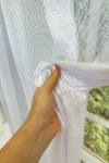 A szórt mintás anyagok izgalmas felülete bármely helyiségben jól mutat Az anyag teljes felületén elszórtan megjelenő ritkább-sűrűbb szálbeszövések izgalmas felületet hoznak létre. Bármilyen, színben harmonizáló, mintás anyagot remekül párosíthatunk hozzá. A fehér szín légies és világos, fényt hoz a szobába A fehér a világosság és a tisztaság színe, egész nap érezhetjük a friss tavaszi szellő simogatását, ha egy szép fehér függöny díszíti az ablakunkat. A fehér színű fényáteresztő függönyöket bármilyen színű sötétítő függönnyel kombinálhatjuk, de a szoba falának színét mindig vegyük figyelembe.Ez a függöny többféle lakberendezési stílushoz is jól illeszthető Ez a függöny több lakberendezési irányzathoz is tökéletesen illeszkedik – legyen szó a vintage nosztalgiáról, a skandináv egyszerűségről, az industrial stílus karakteréről, a mediterrán könnyedségről, az Art deco ragyogásáról, a glamour luxusáról, a minimál letisztultságról vagy a klasszikus eleganciáról. Anyaga diszkréten simul bele a térbe, miközben kiemeli a helyiség hangulatát. Ideális választás, ha olyan textilt keresünk, amely rugalmasan alkalmazkodik a meglévő bútorokhoz és kiegészítőkhöz.Anyaga: jacquard Csipkekötéshez hasonló technikával készült anyag, melyet elsősorban a romantikus vagy klasszikus lakberendezési stílus kedvelőinek ajánlunk. Nem szükséges különösebben vasalni , mosás után elég nedvesen felfüggeszteni, súlya miatt simára szárad (ahogy szokták mondani, "kihúzza" magát). 1.5x-es ráncolással ajánljuk.Terasz ajtókhoz, nagyobb ablakok függönyözéséhez jól használható A karnistól a felső szegéshez szükséges anyagot beleszámítva legfeljebb 293 cm hosszú függönyt lehet belőle varrni, ez alatt bármilyen méretben elkészítjük. Méreténél fogva alkalmas lehet terasz- és erkélyajtók, nagy belmagasságú helyiségek valamint normál ablakok függönyözésére is. A függöny aljába gyárilag varrt ólomzsinór megfelelő esést kölcsönöz a függönynek, megakadályozza az indokolatlan fellebbenést és az apróbb ráncokat is kisimítja.Vasalást kevésbé igénylő anyag Az anyag kevesebb vasalást igényel, mint az átlag függöny. Sokszor elég, ha mosás után még nedvesen a helyükre akasztjuk, így kilógva magát a ráncok kisimulnak és a függönyünk teljes pompájában ragyog!
