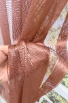 A barna, terrakotta színű fényáteresztő függönyökhöz általában a sötétbarna, bézs, sárga színű sötétítő és dekorfüggönyök illenek legjobban.