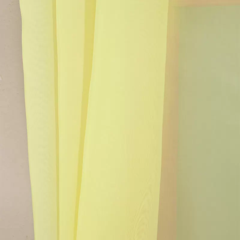 Citromsárga színű, minta nélküli voile függöny. 300 cm magas.A minta nélküli anyagok univerzálisak, jól passzolnak bármihez A minta nélküli anyagokhoz bármilyen színben harmonizáló mintás anyagot, tapétát remekül párosíthatunk. Teremtsen vidám hangulatot otthonában sárga színnel! Vidám és motiváló hangulatot ad a helyiségnek, segít fenntartani a jó egészséget.