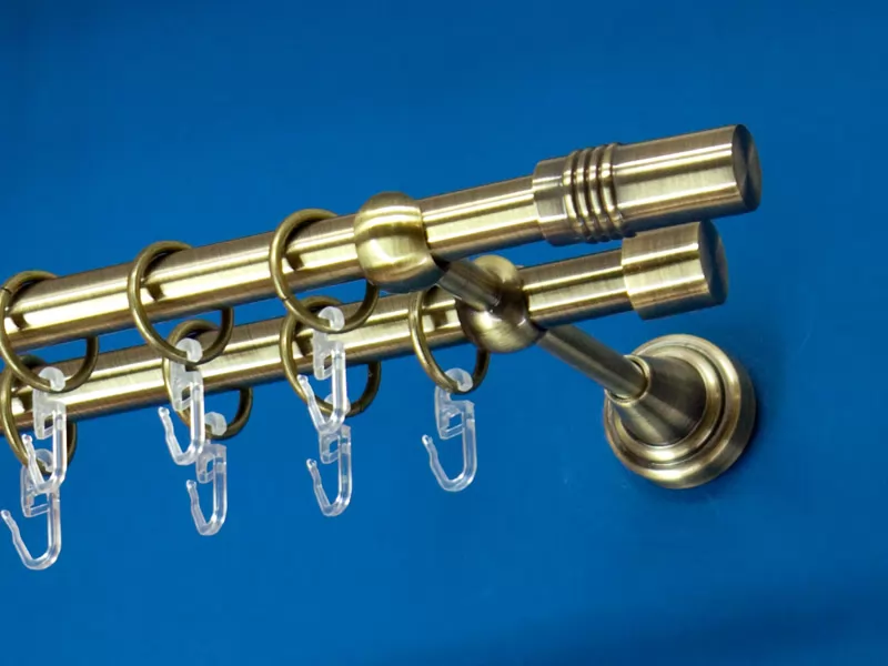 Fém függönykarnis-garnitúra, "henger" végzáróval, kétsoros, antik arany, 180 cm, átm. 16 mm