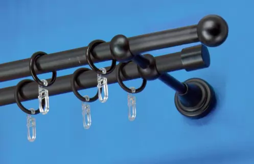 Fém függönykarnis-garnitúra, "golyó" végzáróval, kétsoros, fekete, 180 cm, átm. 16 mm