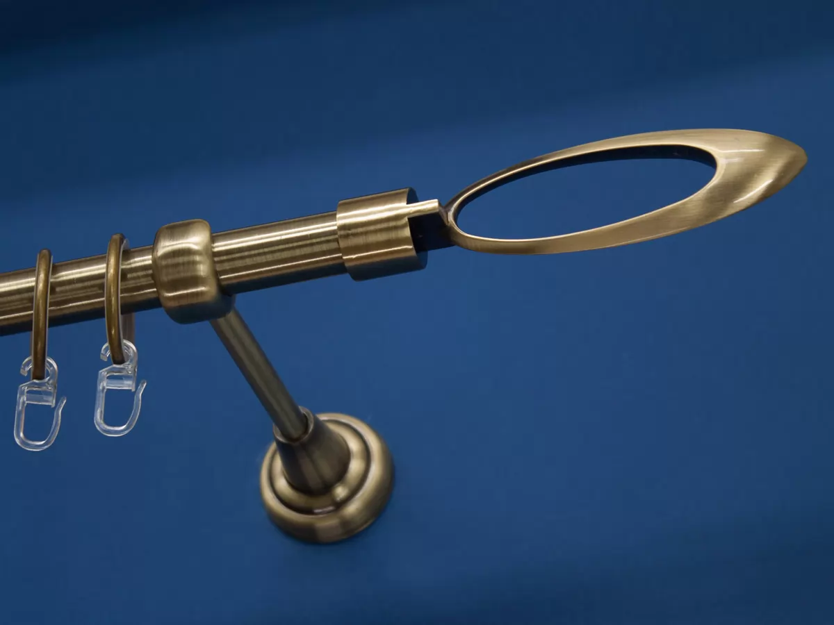 Omikron antik arany egysoros fém függönykarnis-garnitúra, 200 cm, átm. 19 mm