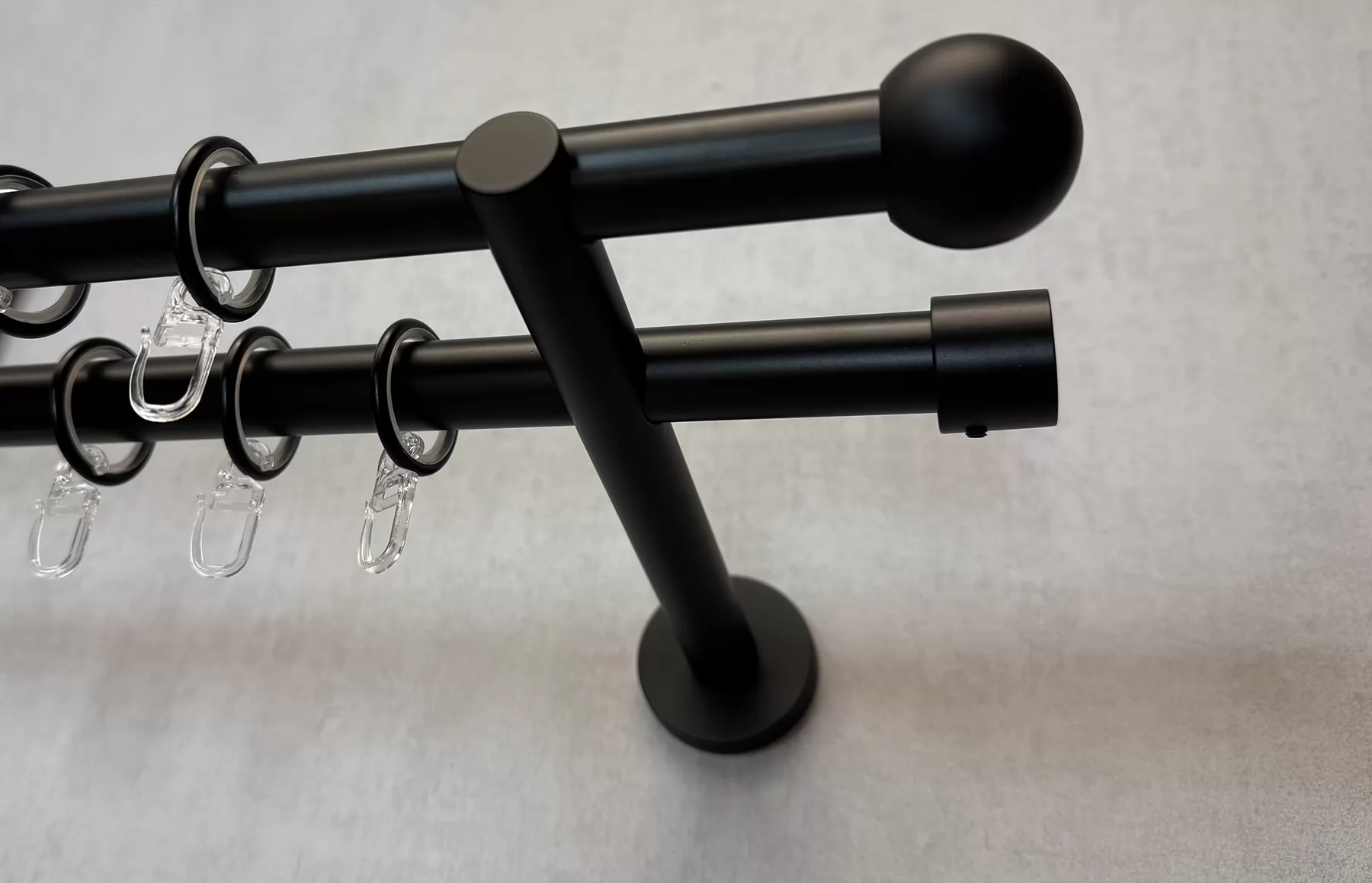 Beta – matt fekete, kétsoros fém függönykarnis-garnitúra, 240 cm, átm. 19 mm