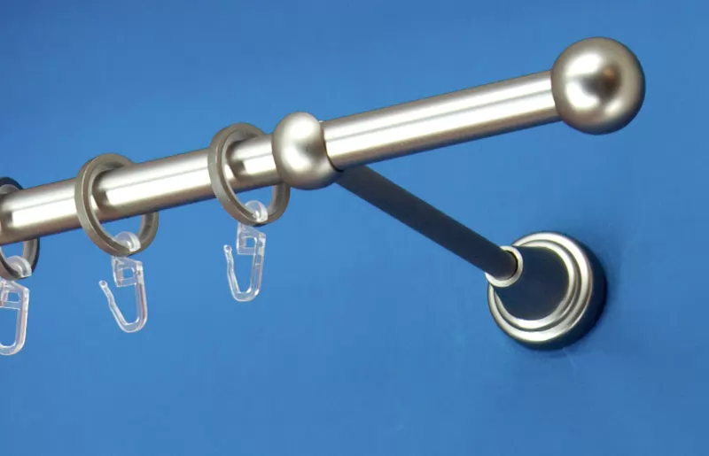 Fém függönykarnis-garnitúra, "golyó" végzáróval, egysoros, matt króm, 200 cm, átm. 16 mm