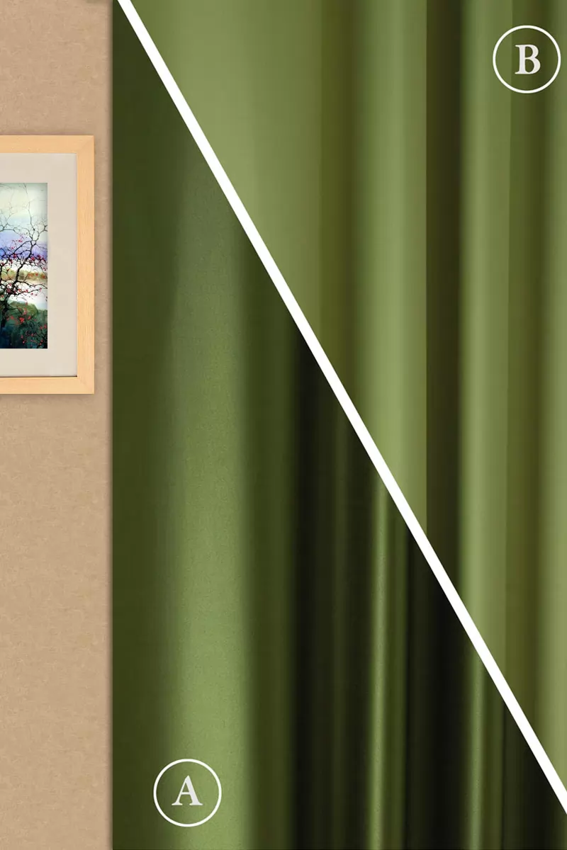 A zöld színű sötétítő anyagokhoz általában a tónusában hasonló zöld, rózsaszín, bézs, ekrü és fehér színű fényáteresztő függönyök illenek legjobban.