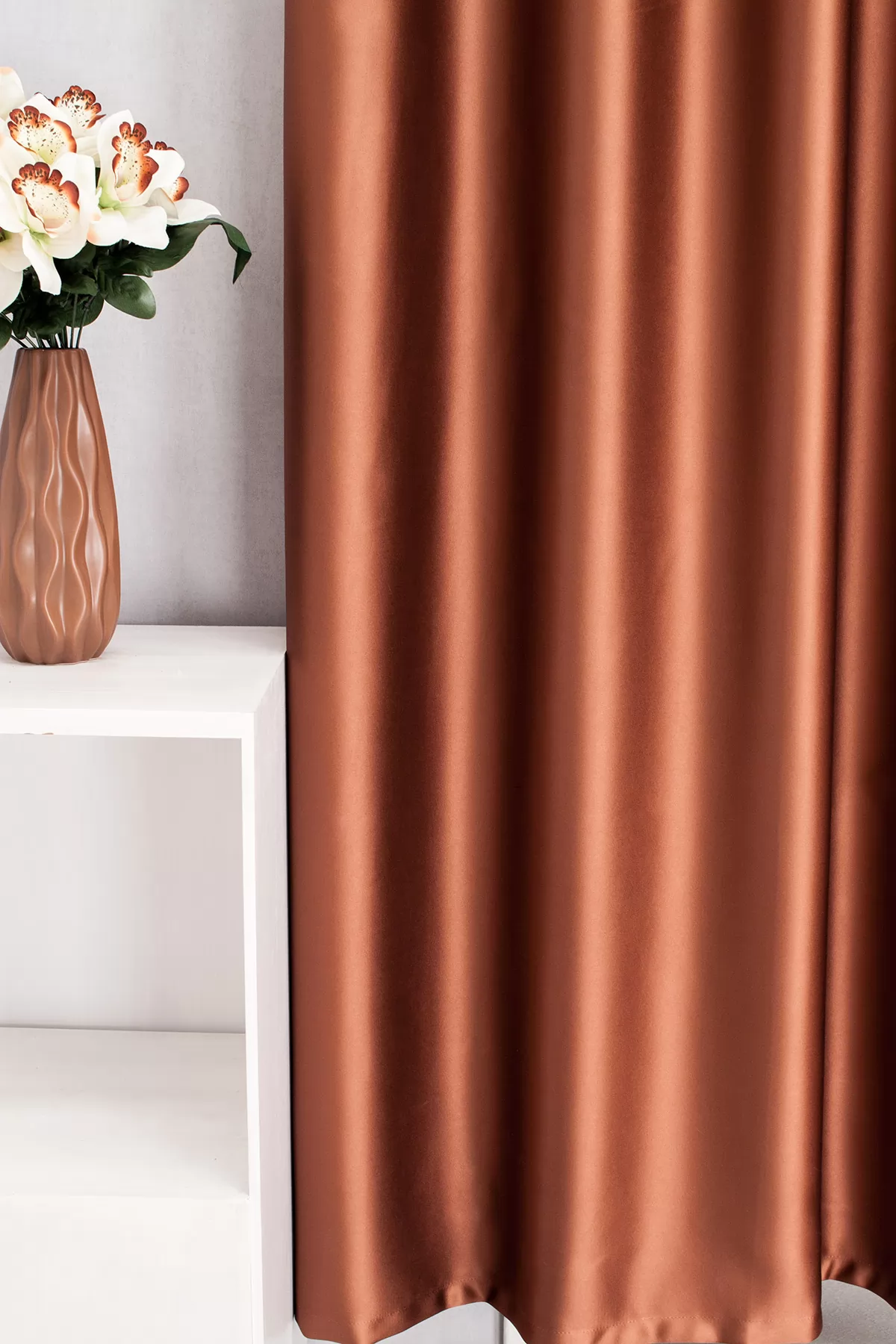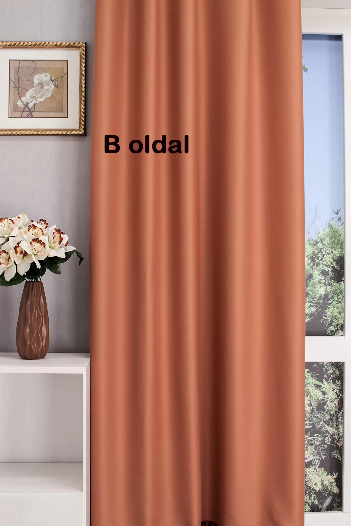 A barna, terrakotta színű sötétítő anyagokhoz általában a bézs, ekrü, sárga, fehér, színű fényáteresztő függönyök illenek legjobban.