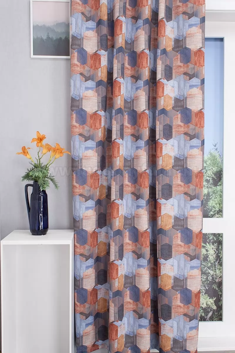 Az ablakok dekorálásának egyik fontos funkciója, a fényáteresztés befolyásolása. Ez a függöny a különleges szövési technikának köszönhetően viszonylag erős sötétítést biztosít. A mintát nyomtatási eljárással hordják fel a matt fehér anyagra, így gazdag színezhetőséget tesz lehetővé. Jó esésű és nem lebbenti fel az első szellő. 30 fokon mosható, kíméletes vasalást igényelhet.