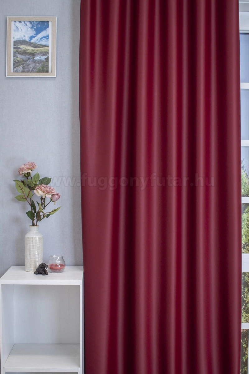 A bordó, vörös színű sötétítő anyagokhoz általában a piros, zöld, bézs, ekrü, fehér és szürke színű fényáteresztő függönyök illenek legjobban.