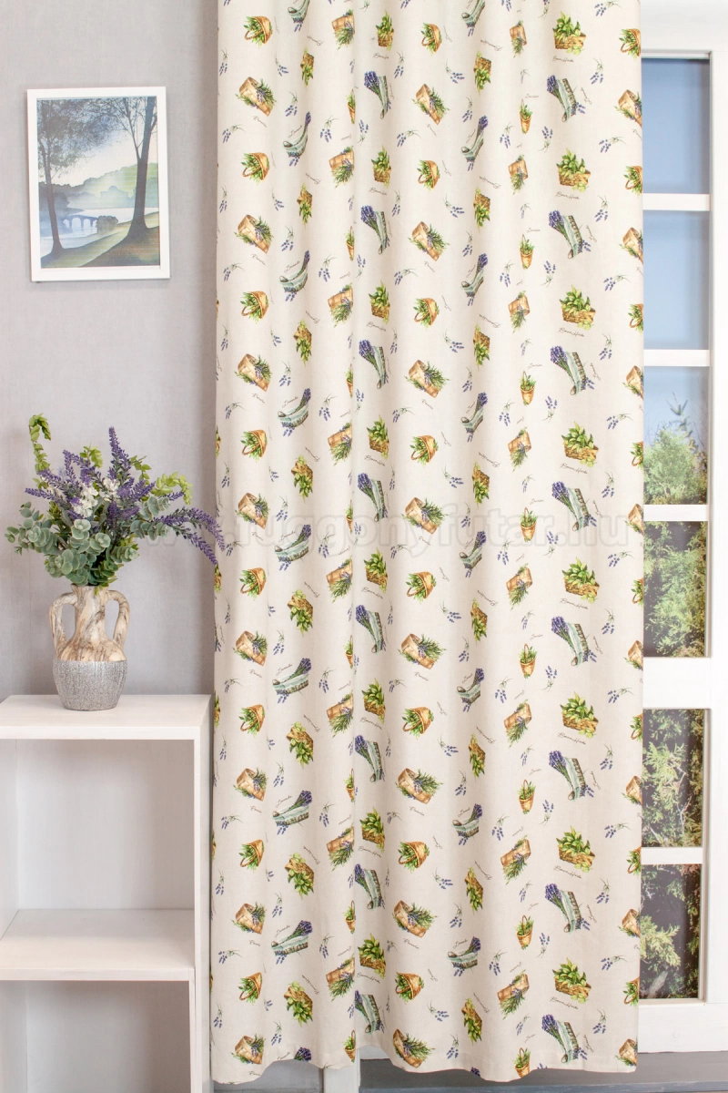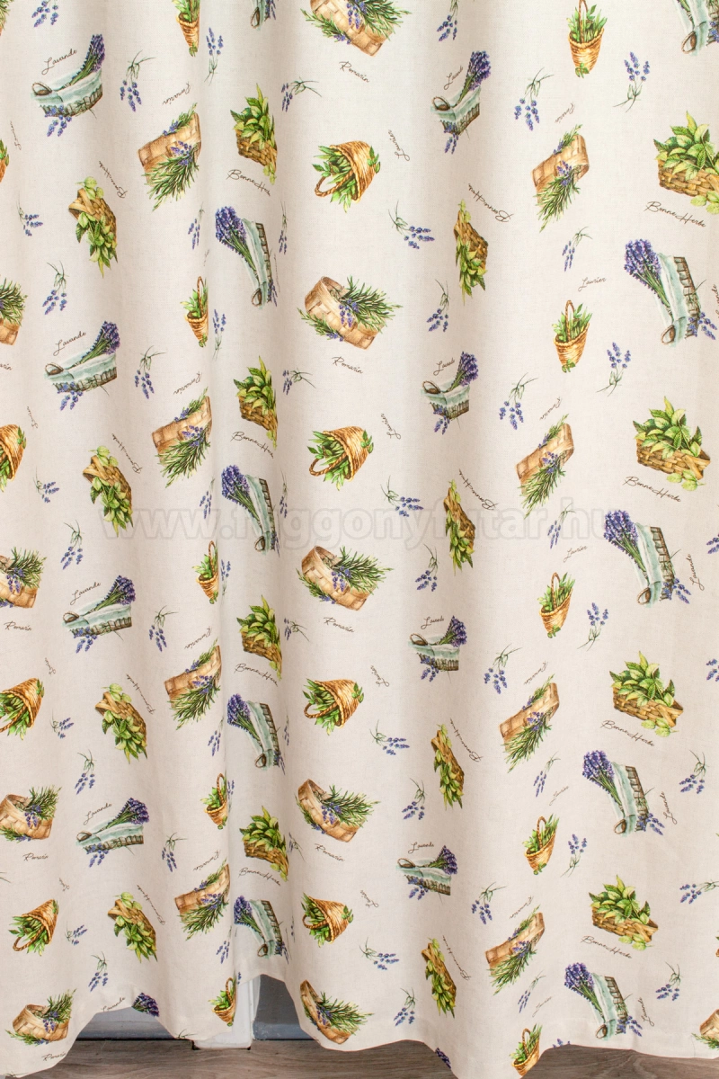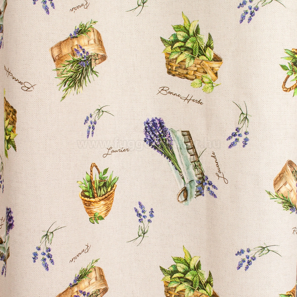 Celtic cart - bézs-zöld-lila színű, dekor és abrosz anyag sötétítő kevert vászon függöny, levendula mintával, közepesen vastag
