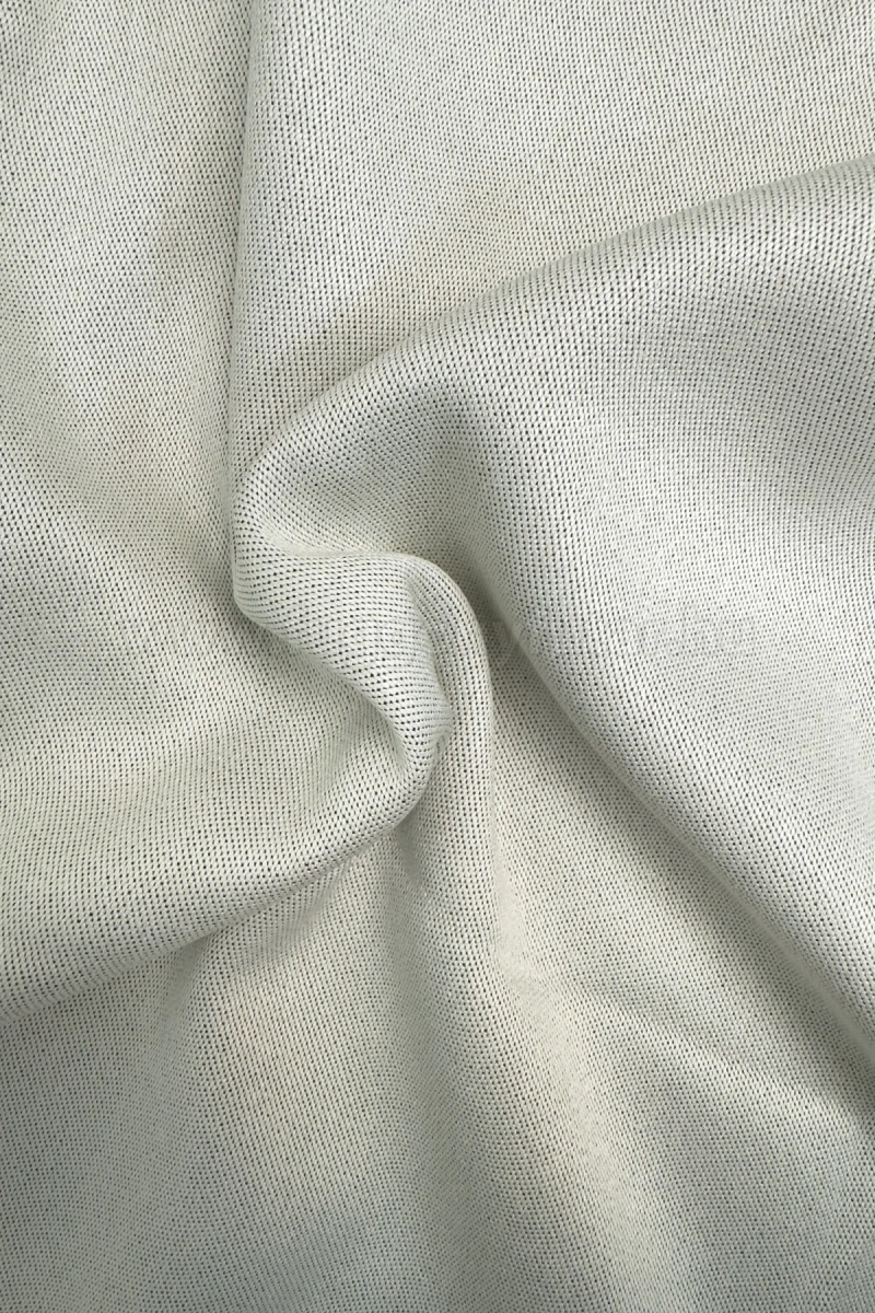 Az anyag teljes felületén elszórtan megjelenő ritkább-sűrűbb szálbeszövések izgalmas felületet hoznak létre. Bármilyen, színben harmonizáló, mintás anyagot remekül párosíthatunk hozzá.