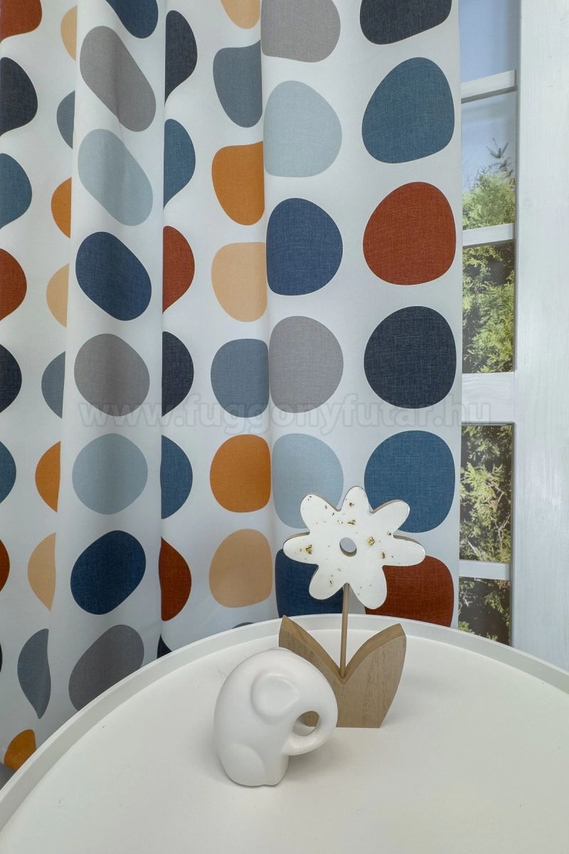 Az ablakok dekorálásának egyik fontos funkciója, a fényáteresztés befolyásolása. Ez a függöny a különleges szövési technikának köszönhetően viszonylag erős sötétítést biztosít. A mintát nyomtatási eljárással hordják fel a matt fehér anyagra, így gazdag színezhetőséget tesz lehetővé. Jó esésű és nem lebbenti fel az első szellő. 30 fokon mosható, kíméletes vasalást igényelhet.