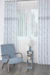 Celeste - Bézs alapon világoskék hímzett nagy virágmintás dekor függöny