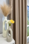 A barna, terrakotta színű sötétítő anyagokhoz általában a bézs, ekrü, sárga, fehér, színű fényáteresztő függönyök illenek legjobban.