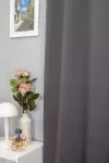 A szürke színű sötétítő függönyöket bátran párosíthatjuk bármely élénk színű fényáteresztő anyaggal.