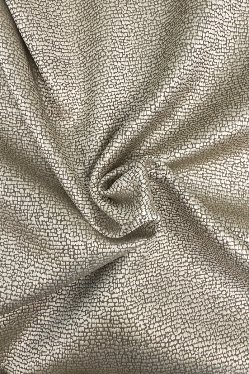 Az anyag teljes felületén elszórtan megjelenő ritkább-sűrűbb szálbeszövések izgalmas felületet hoznak létre. Bármilyen, színben harmonizáló, mintás anyagot remekül párosíthatunk hozzá.