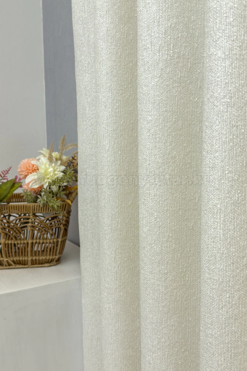 Ezek a függönyök jellegzetes, hurkolt poliészter szálakból állnak, amelyek különleges, térhatású, rusztikus, de mégis puha tapintást kölcsönöznek nekik. Vastagságuktól függően közepesen vagy erősen sötétítenek, látványos textúrájuk miatt pedig nagyon népszerűek. 30 fokon, kímélő programmal mosható, és a hurkolt felületnek köszönhetően vasalást általában kevésbé igényel.