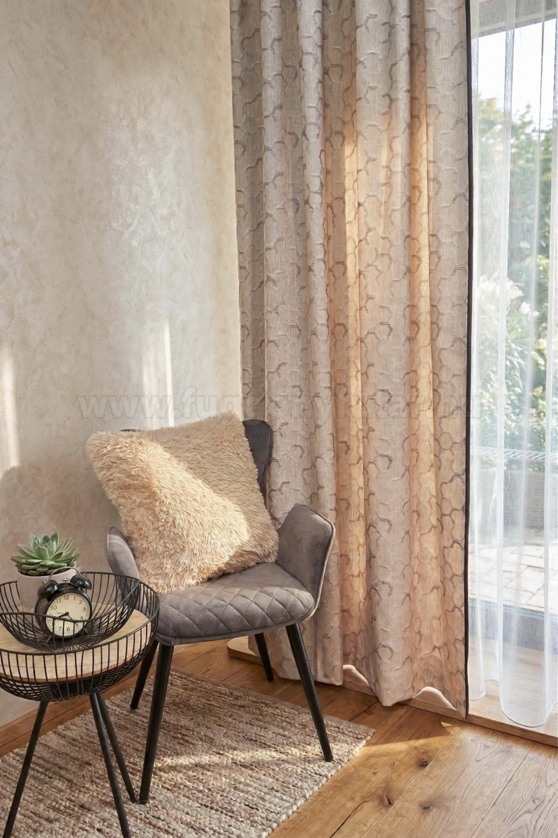 Ezek a függönyök többnyire kevert pamut/poliészter szálból készülnek, könnyűek, kissé érdes tapintásúak, közepesen sötétítenek és így inkább dekorációs célokra alkalmazhatók. 30 fokon mosható, kíméletes vasalást igényelhet.