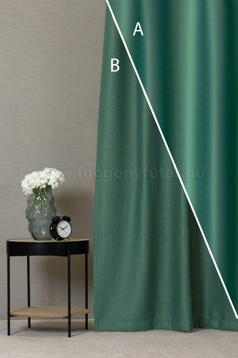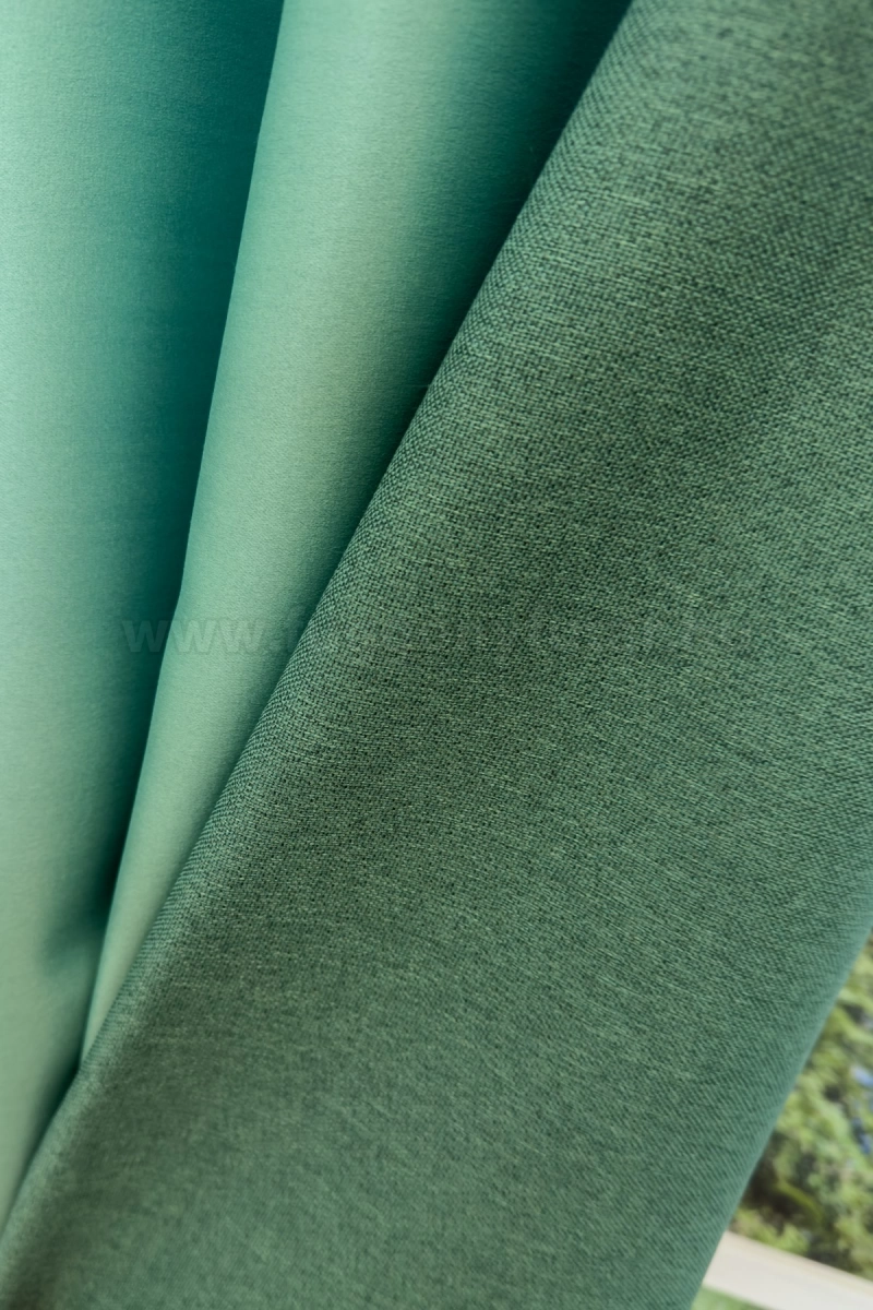 A zöld színű sötétítő anyagokhoz általában a tónusában hasonló zöld, rózsaszín, bézs, ekrü és fehér színű fényáteresztő függönyök illenek legjobban.