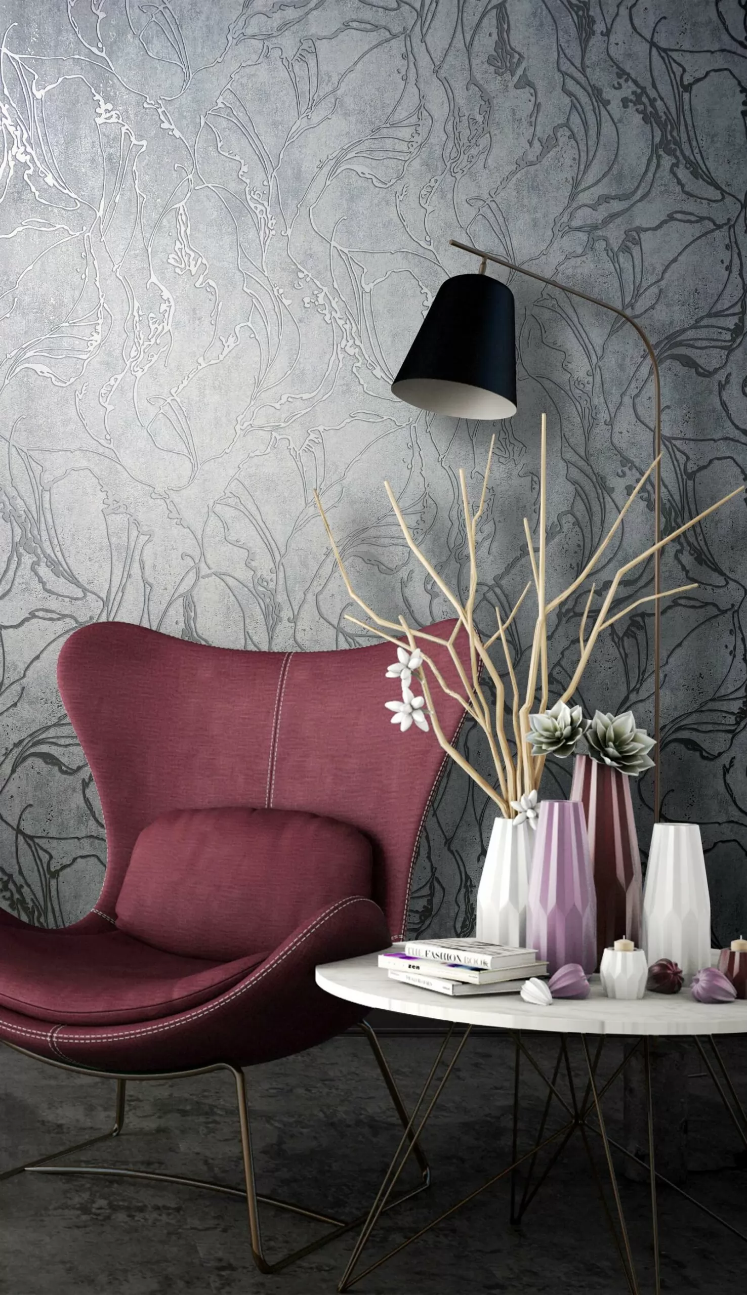 Szürke, fényes hatású hullám mintás mosható vlies tapéta, Marburg, City Glow, 34254