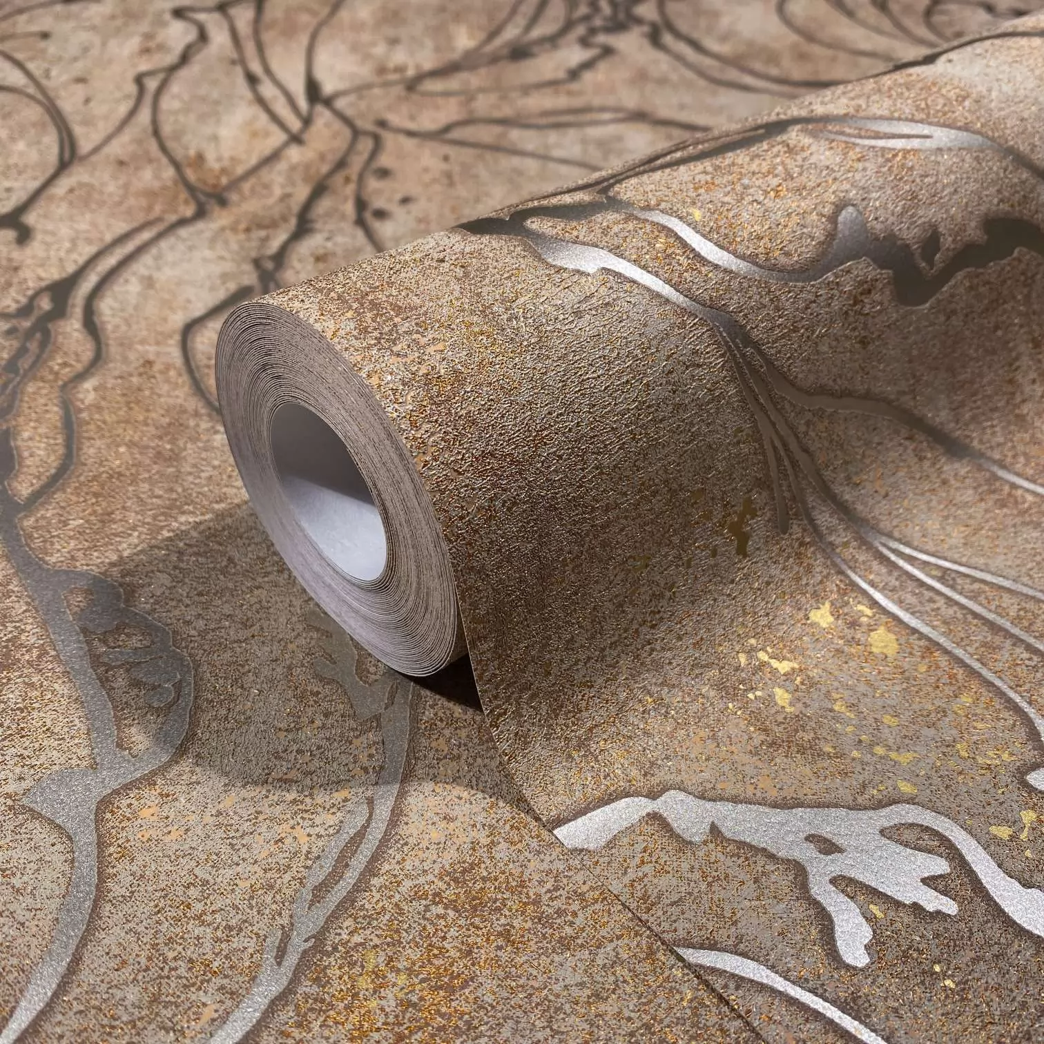 Bronz, fényes hatású hullám mintás mosható vlies tapéta, Marburg, City Glow, 34255