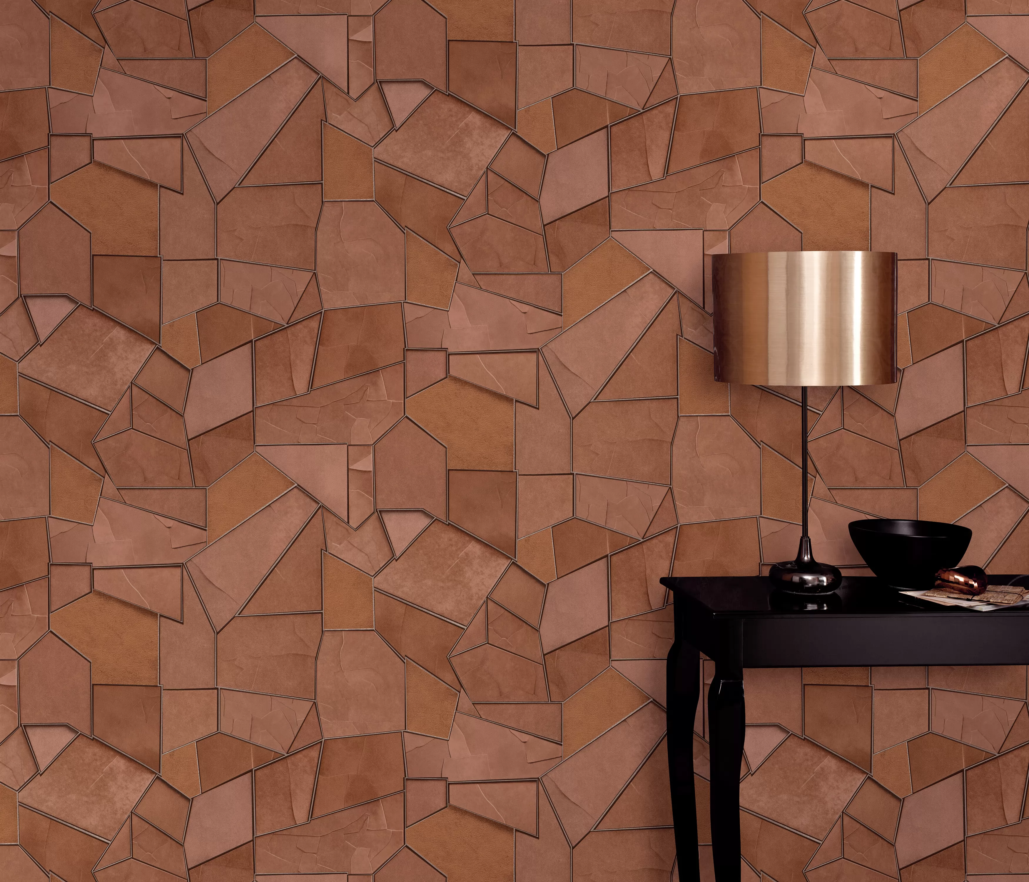 Terrakotta-arany színű kőmintás Vlies-vinyl tapéta, Erismann Elle Decoration 4, 10445-13